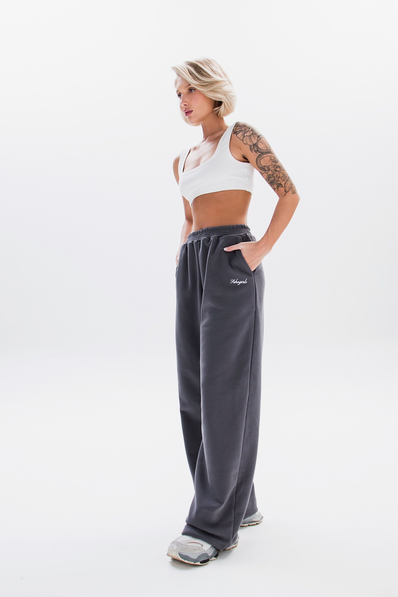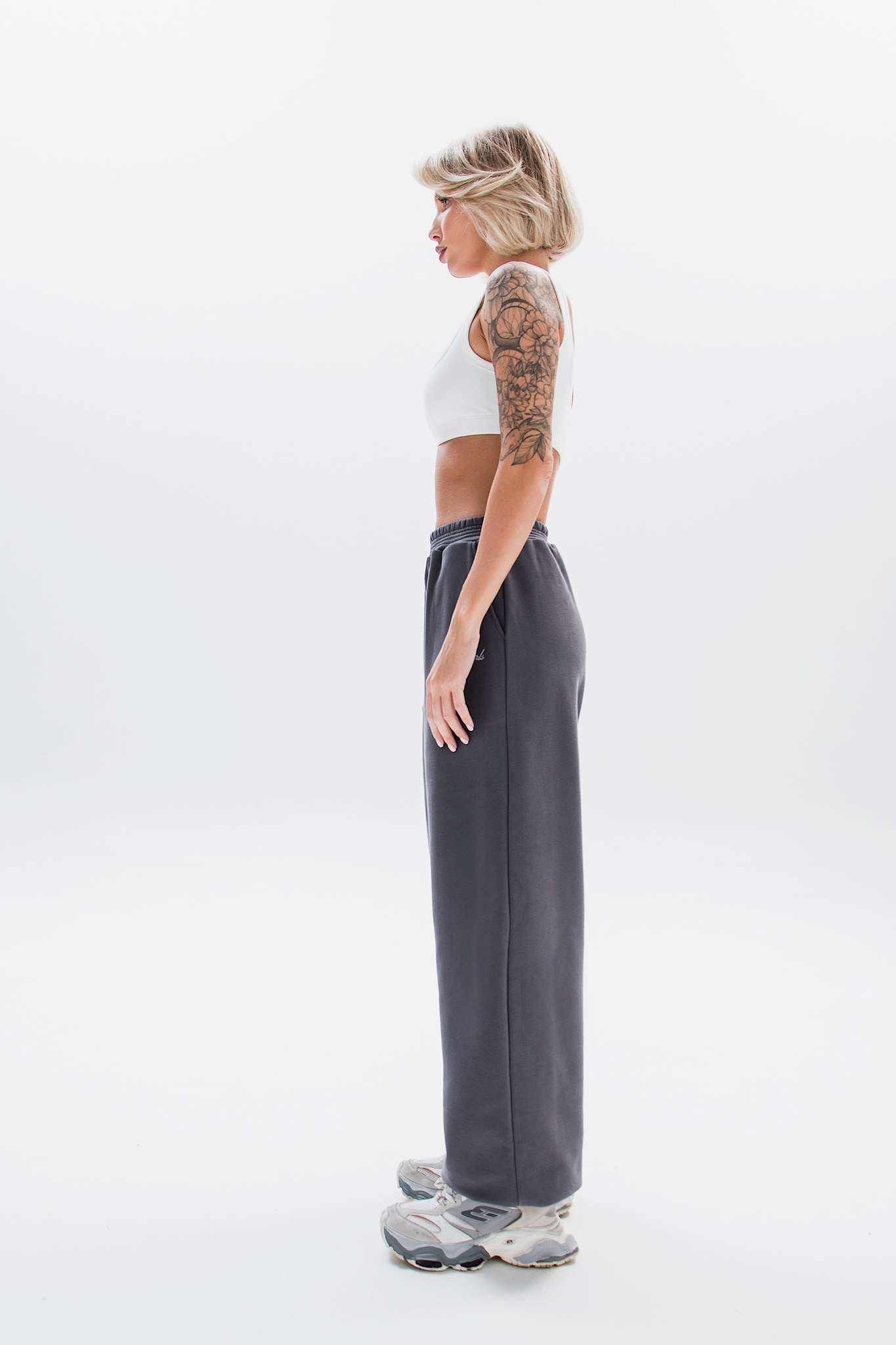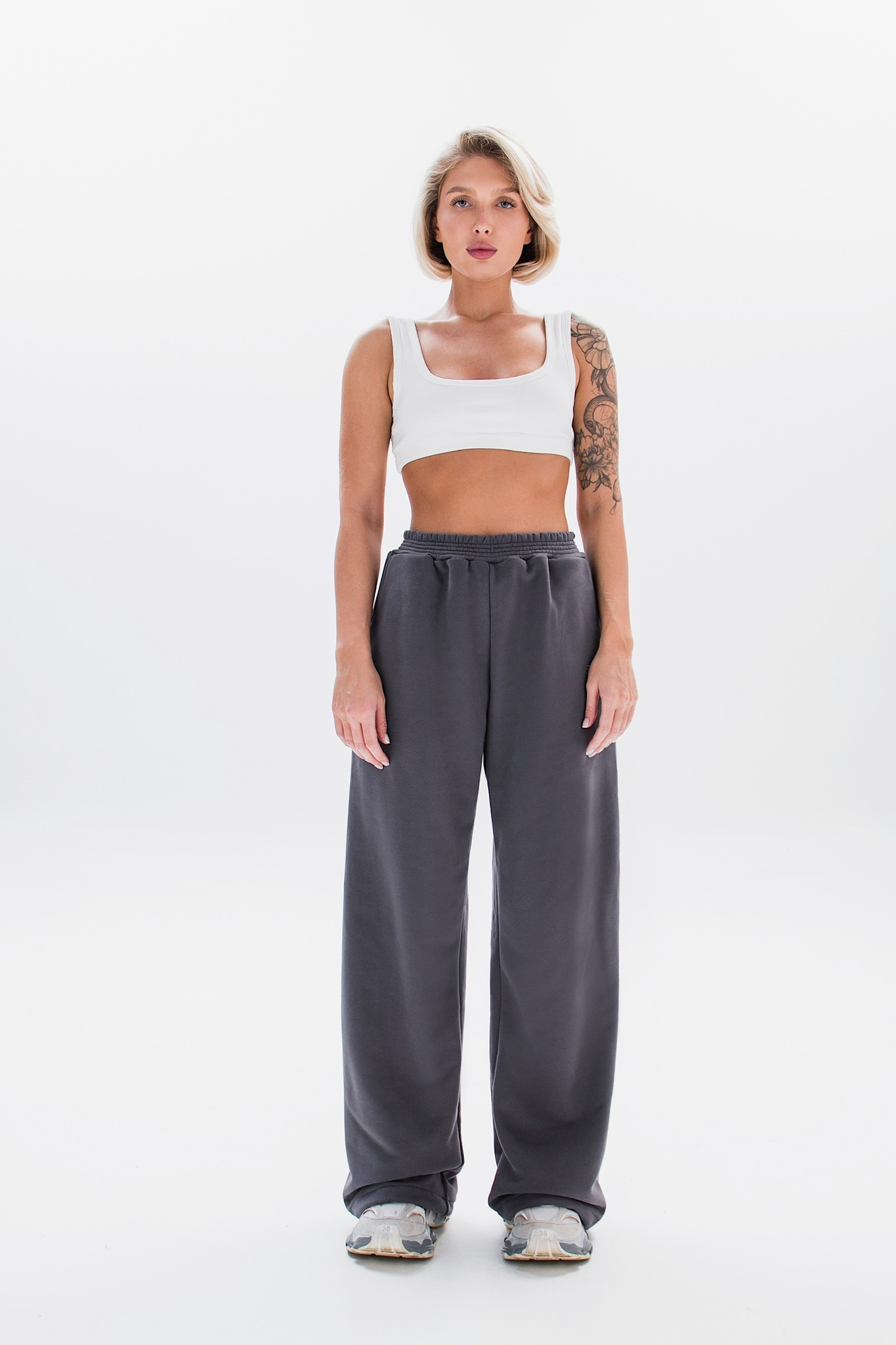 Брюки можно носить как классические палаццо или трансформировать в стильные джоггеры, используя скрытые фиксаторы снизу. Такой функциональный дизайн подойдет для создания различных образов