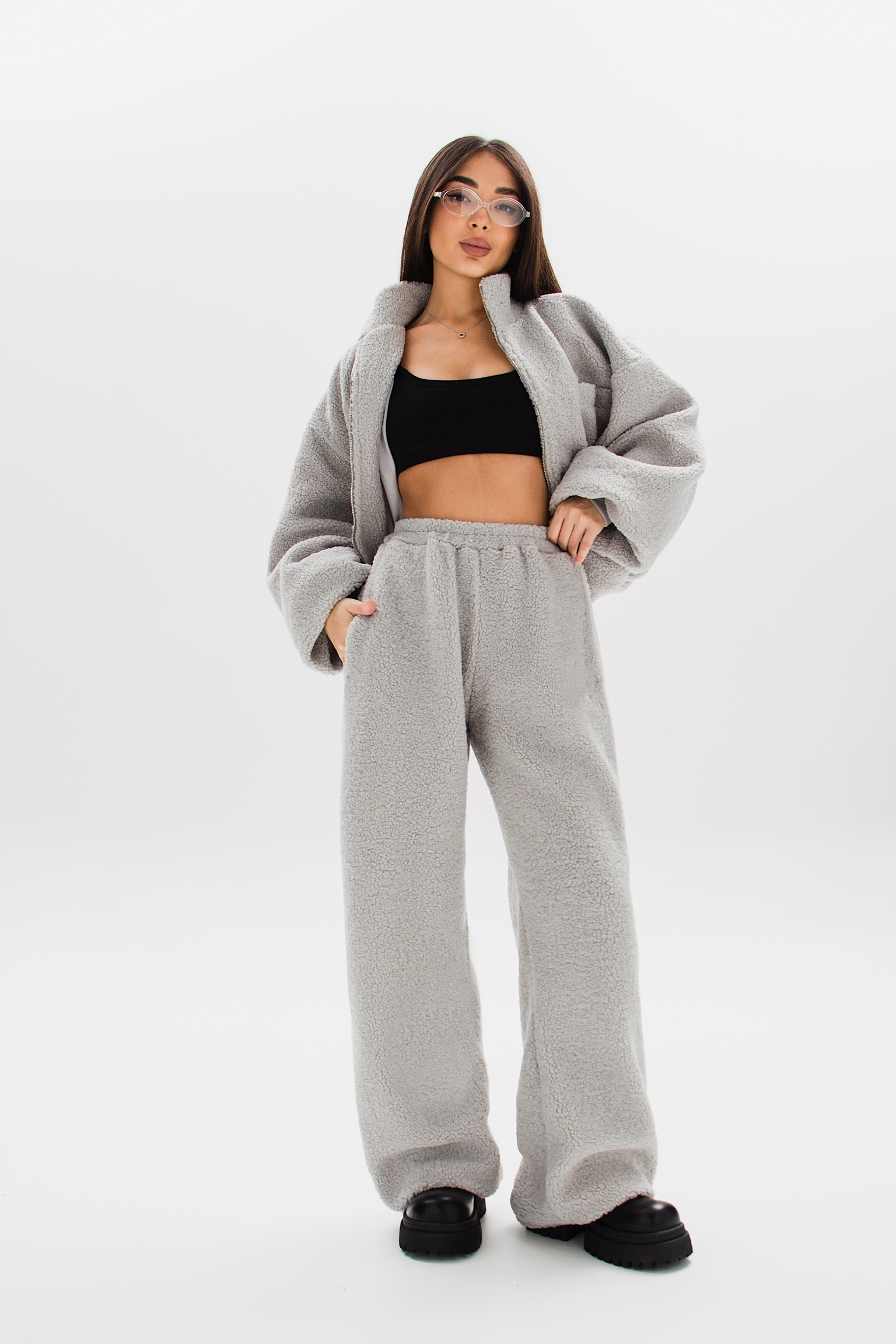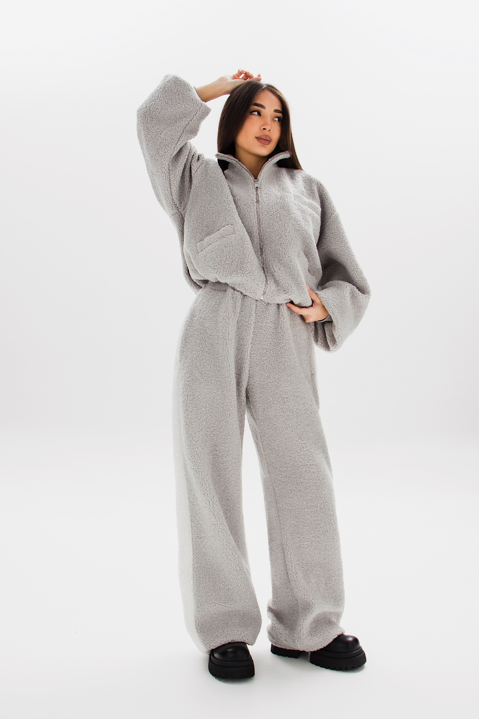 Свободные брюки TEDDY из объёмного пушистого материала, сочетаются с толстовкой TEDDY в комплекте или отдельно.