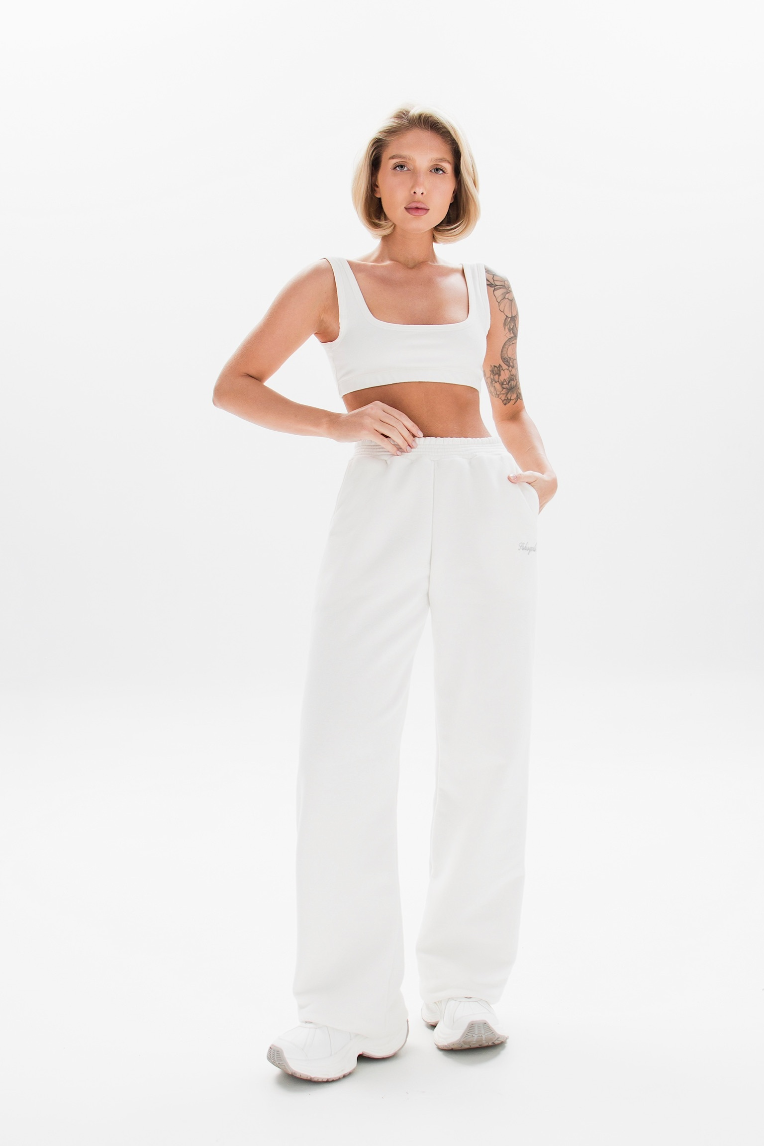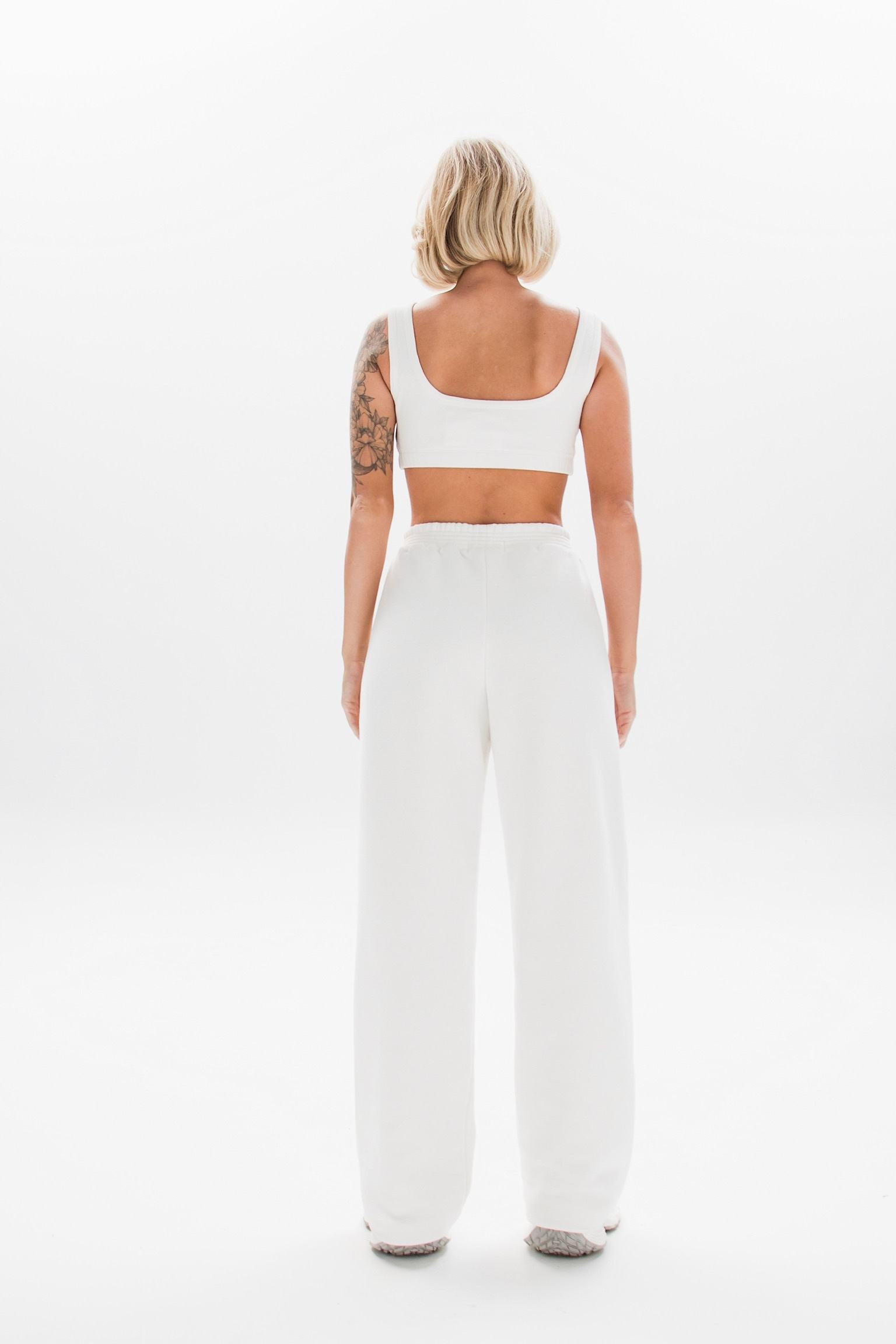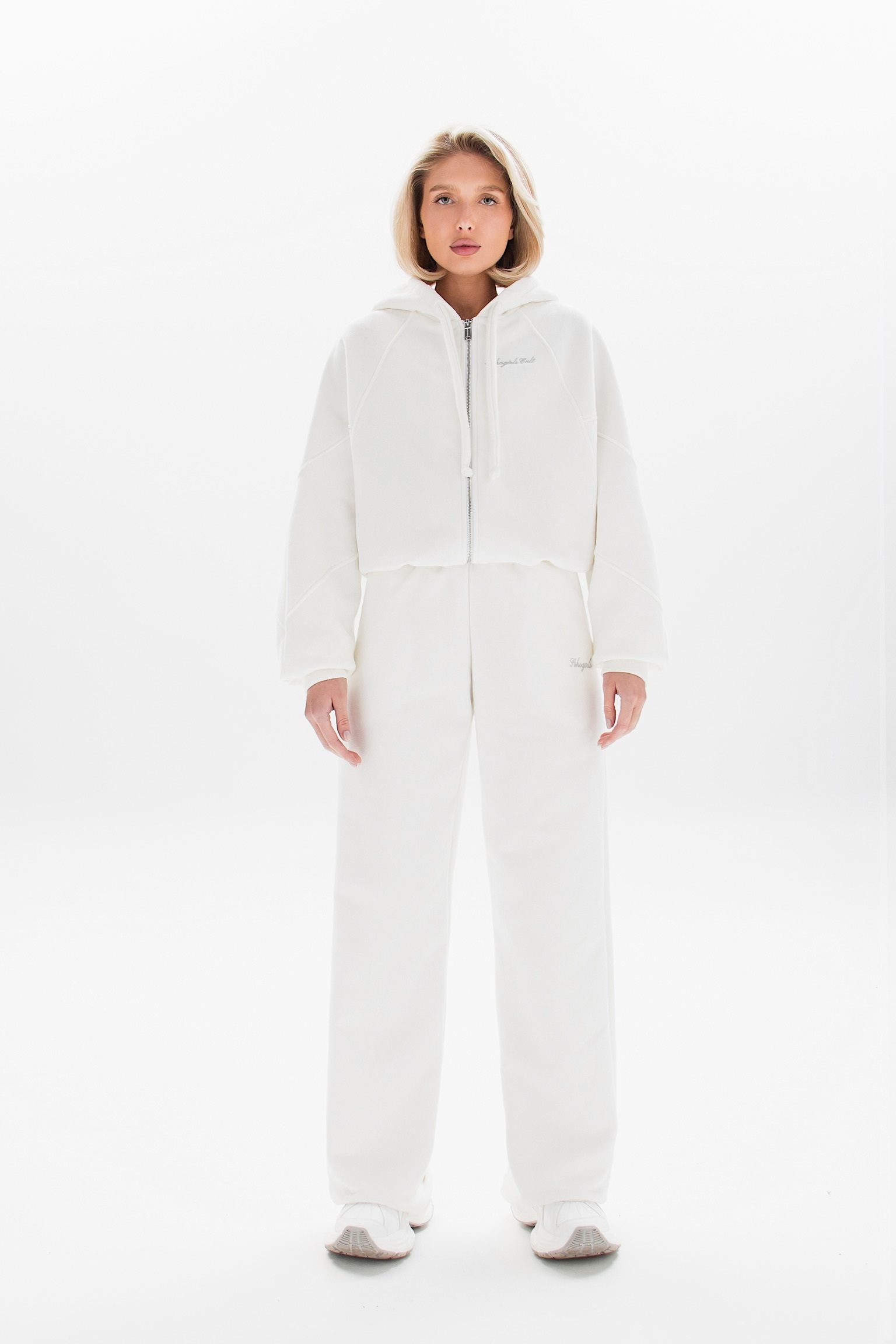 Брюки можно носить как классические палаццо или трансформировать в стильные джоггеры, используя скрытые фиксаторы снизу. Такой функциональный дизайн подойдет для создания различных образов