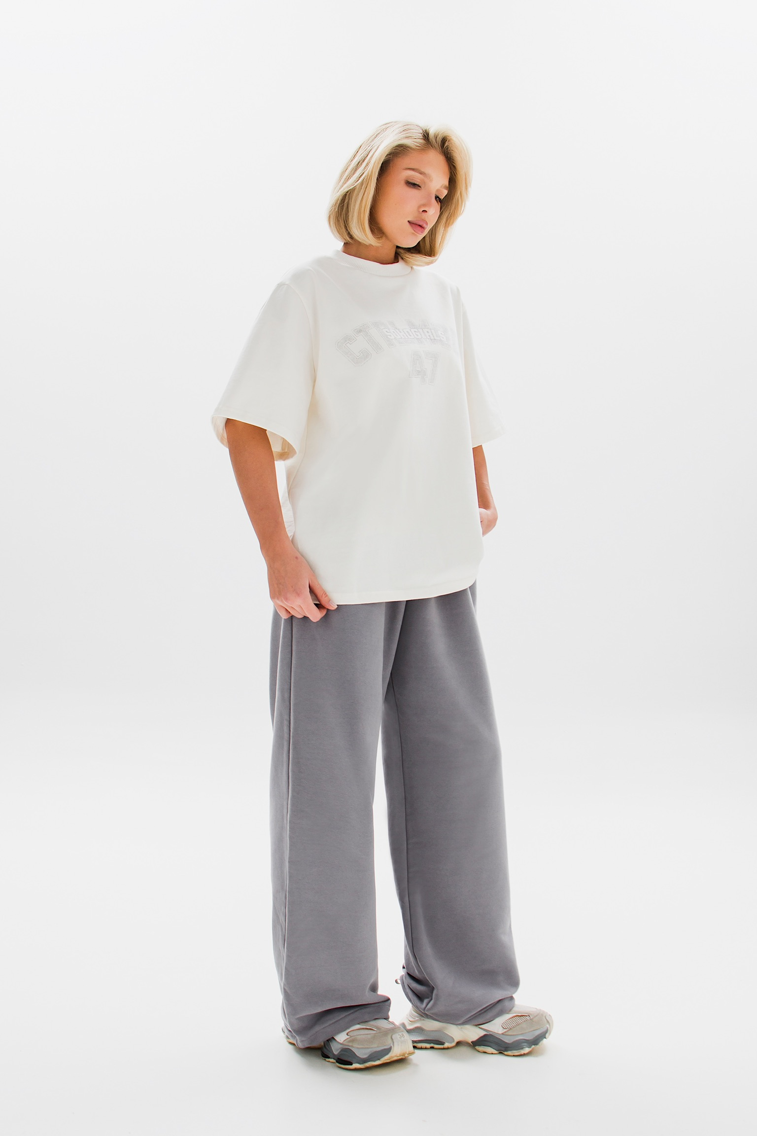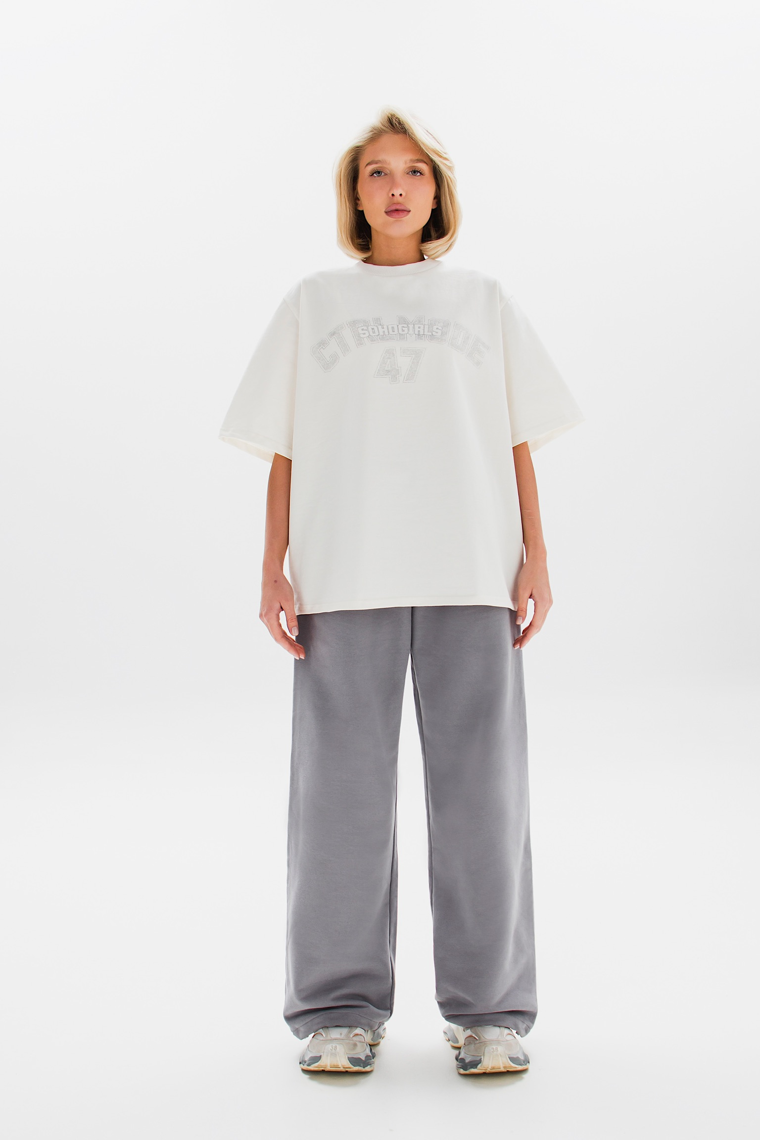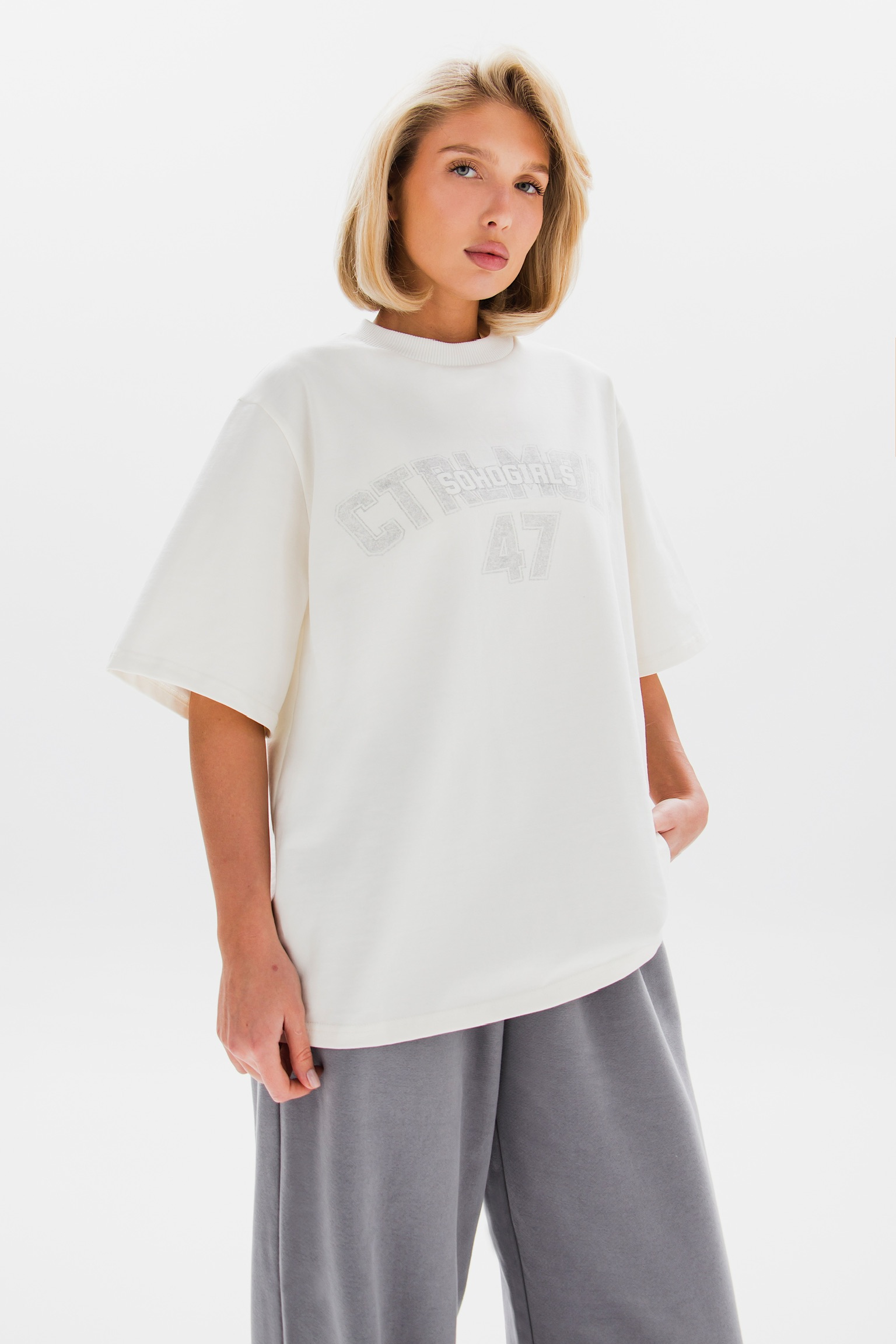 Принт на груди добавляет характер и завершает образ. Идеальный выбор для создания расслабленного, но выразительного стиля
