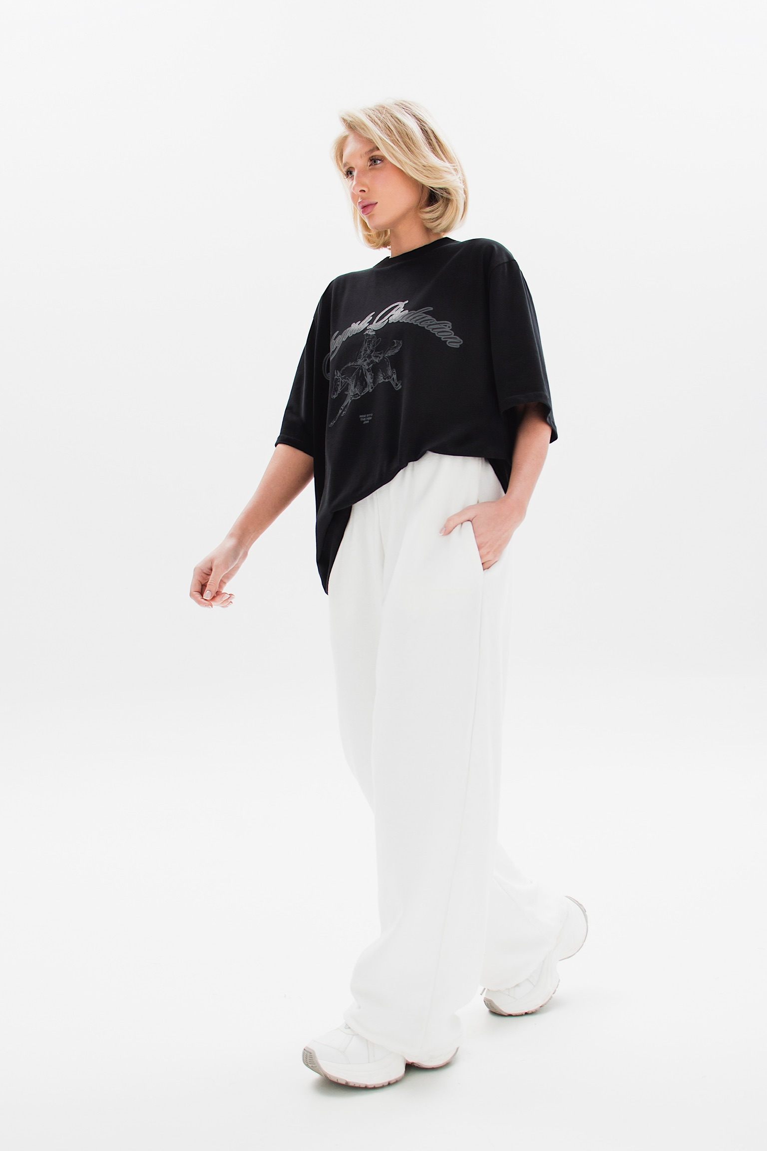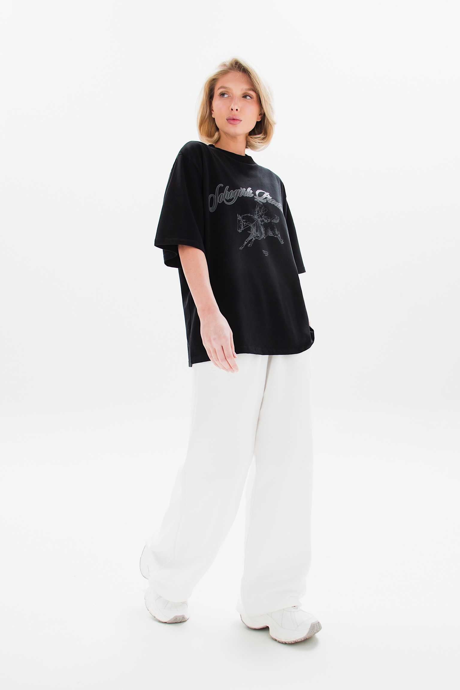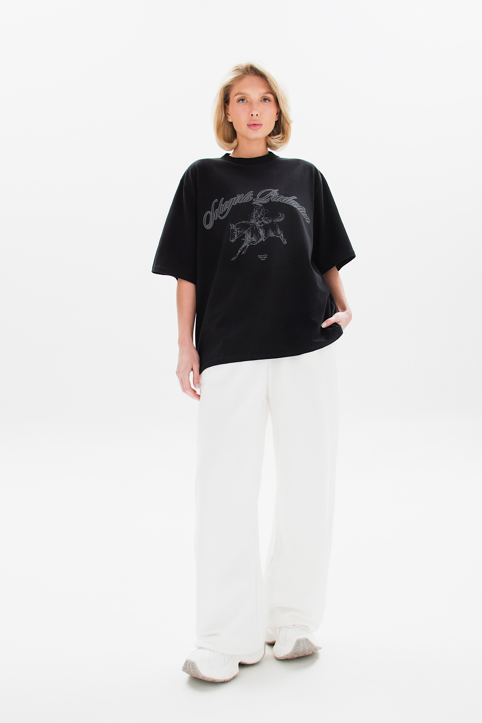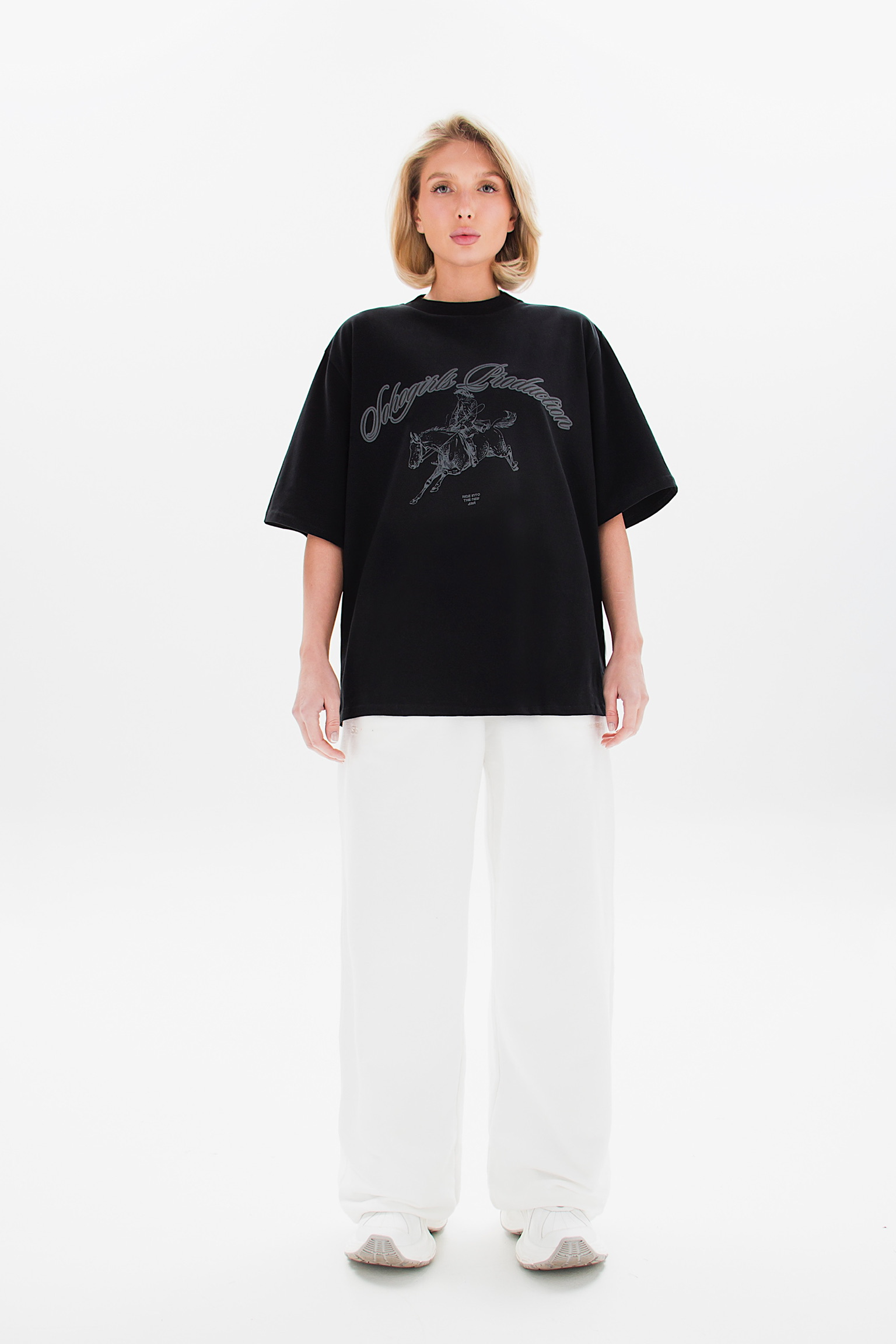 Свободная хлопковая футболка с акцентным принтом, вдохновлённым символом Нового года. Изображение всадника на лошади символизирует движение вперёд, силу и начало нового этапа. Надпись “Ride into the New Era” подчёркивает идею обновления и уверенного шага в будущее.