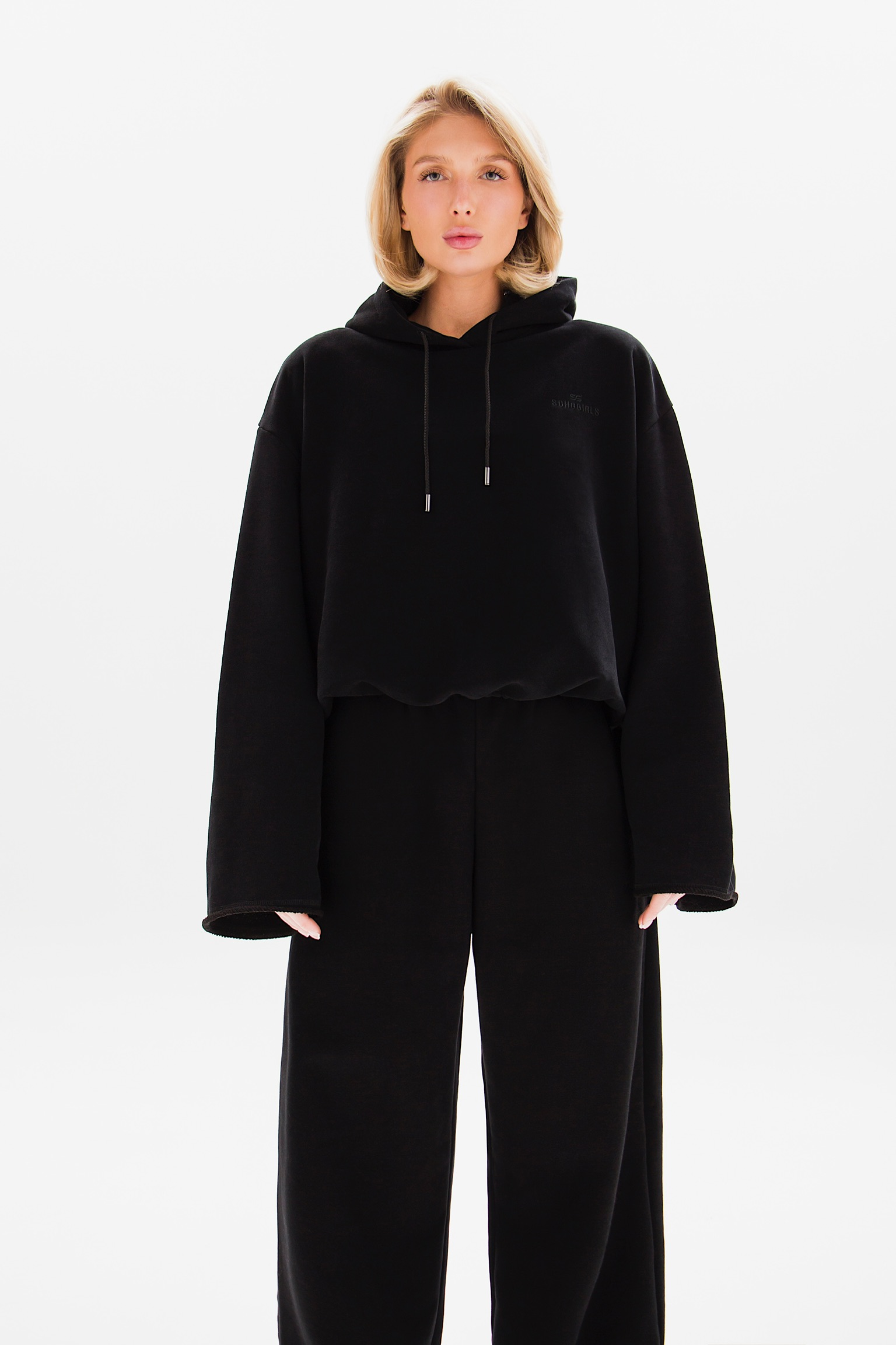 Объёмное худи из мягкого хлопкового футера, в котором сочетаются комфорт, женственность и характер. Вшитые подплечники формируют современный силуэт и придают модели выразительность, сохраняя при этом ту самую расслабленную посадку худи.
