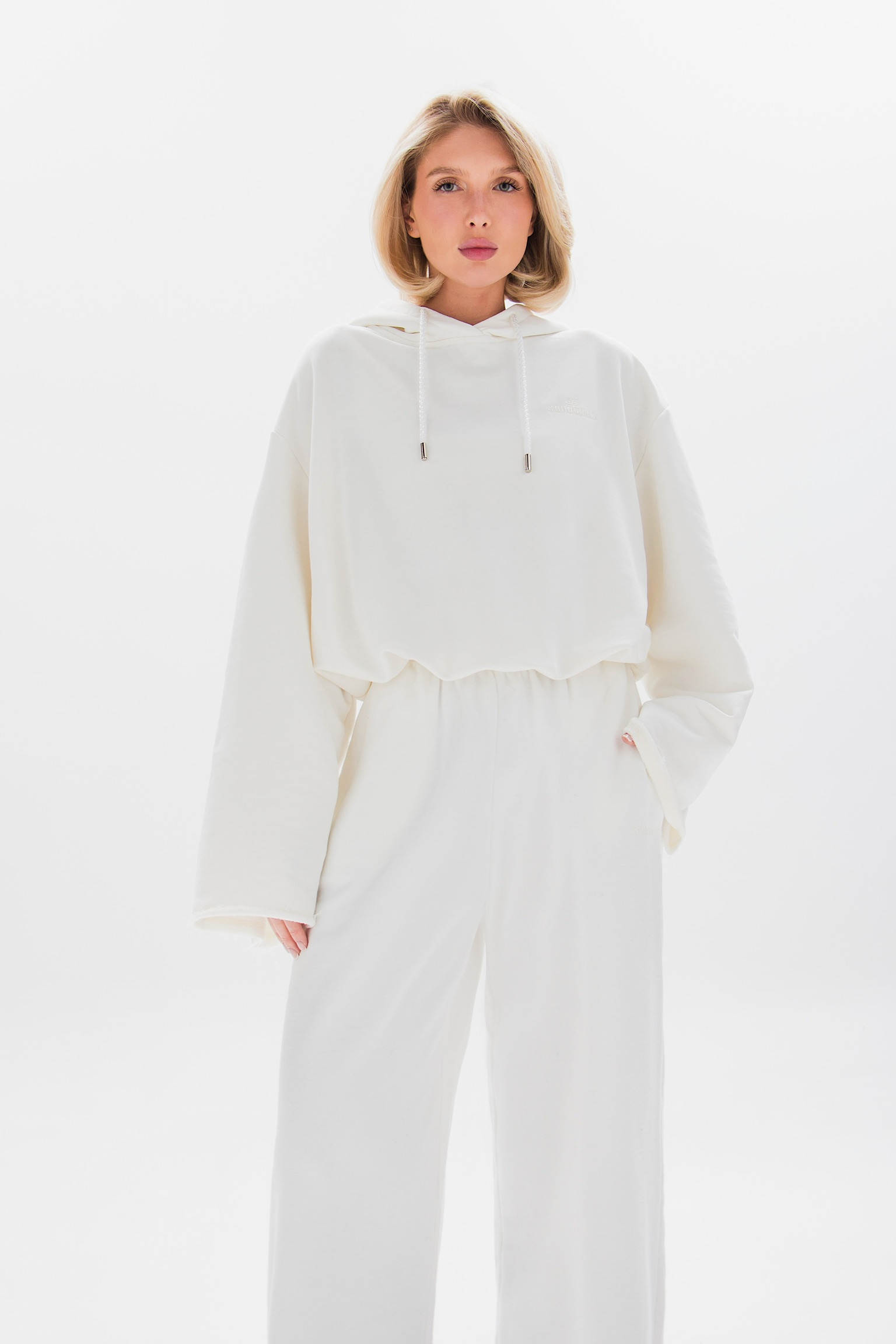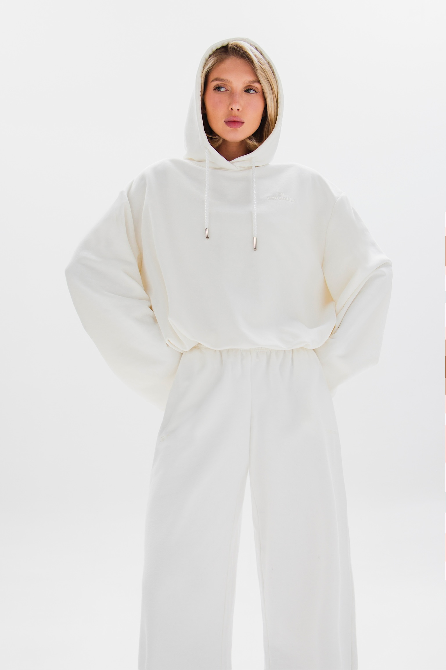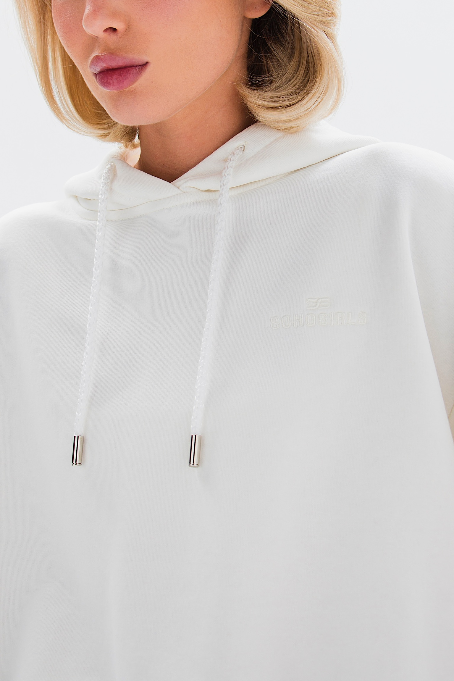Объёмное худи из мягкого хлопкового футера, в котором сочетаются комфорт, женственность и характер. Вшитые подплечники формируют современный силуэт и придают модели выразительность, сохраняя при этом ту самую расслабленную посадку худи.