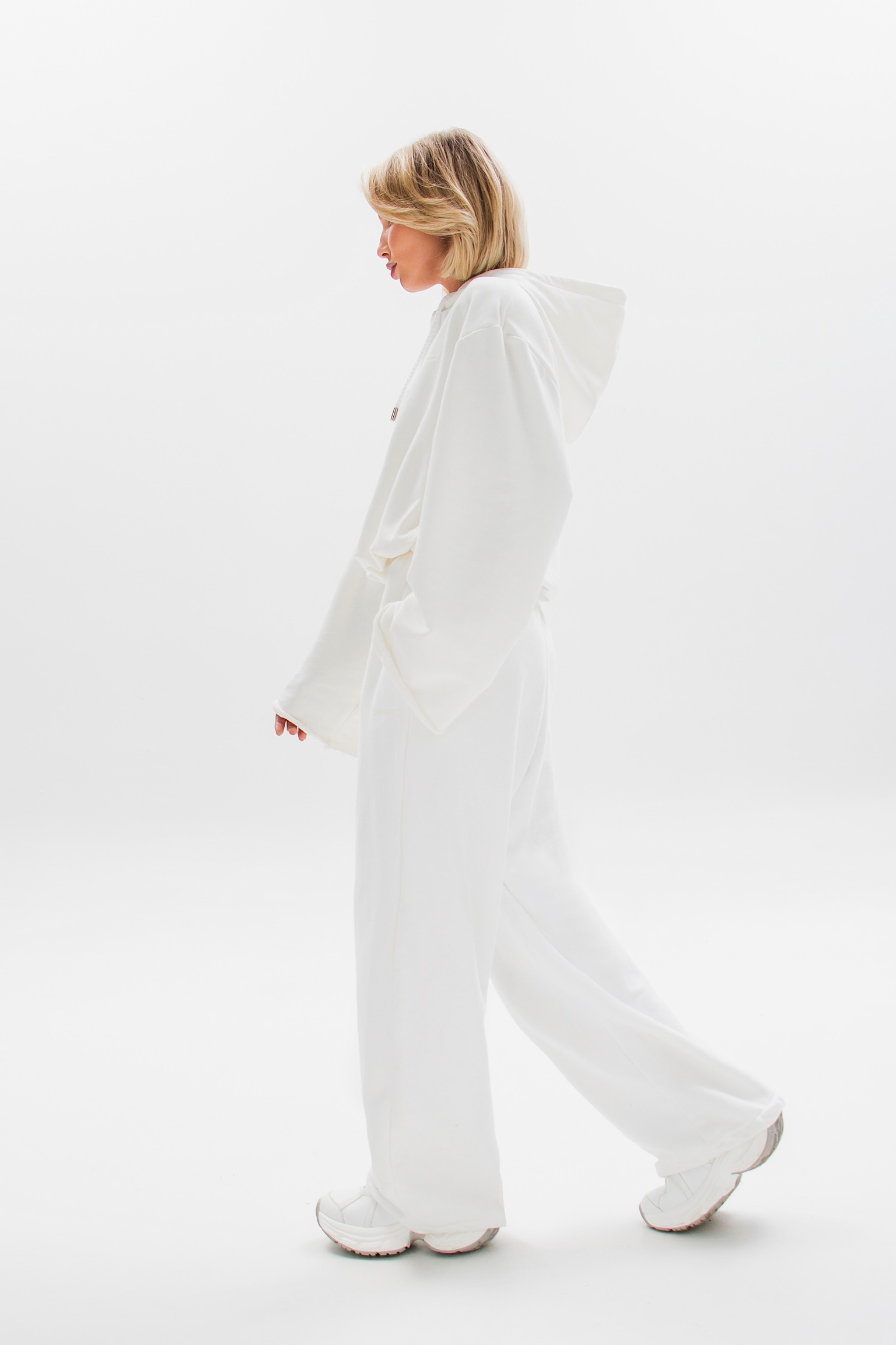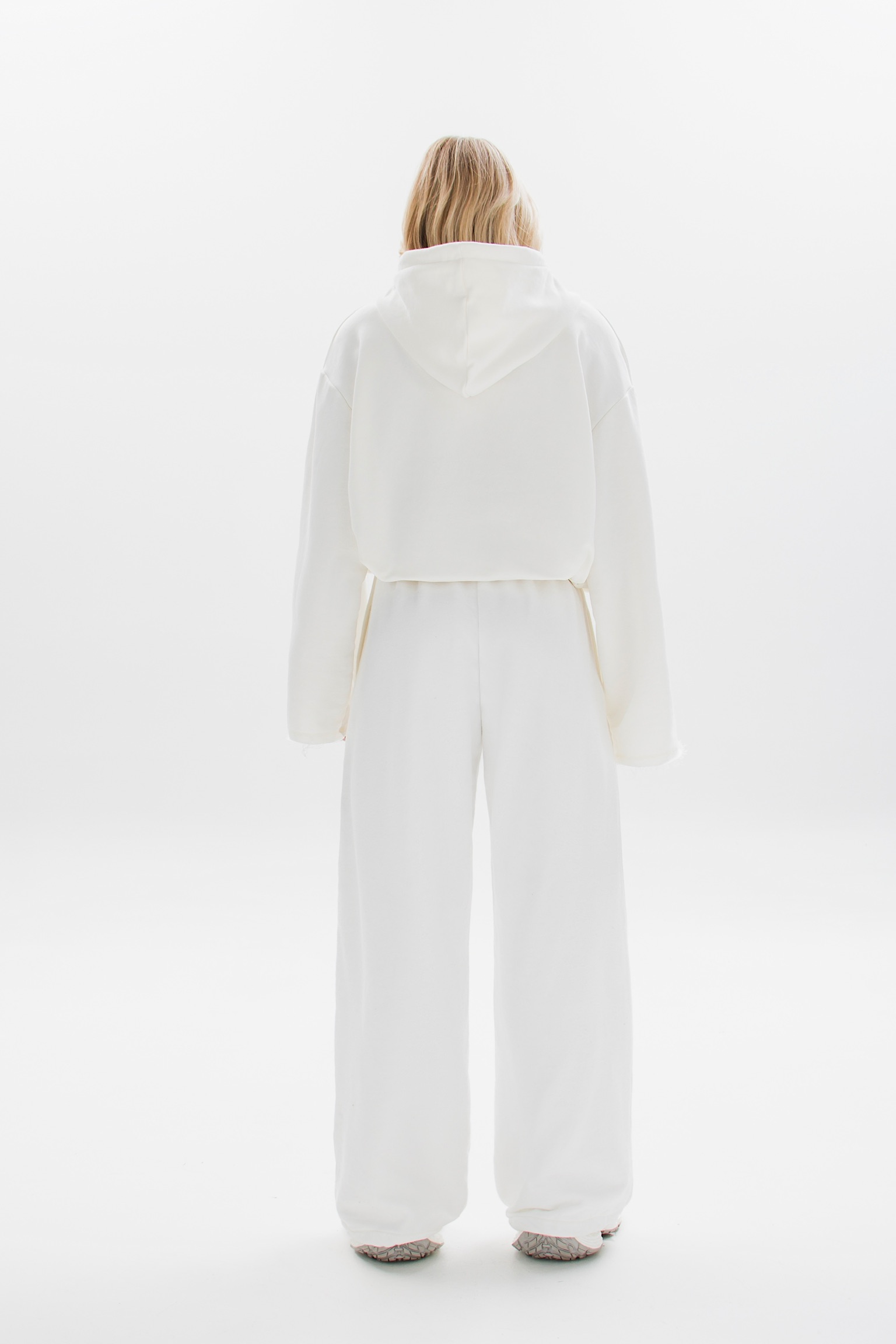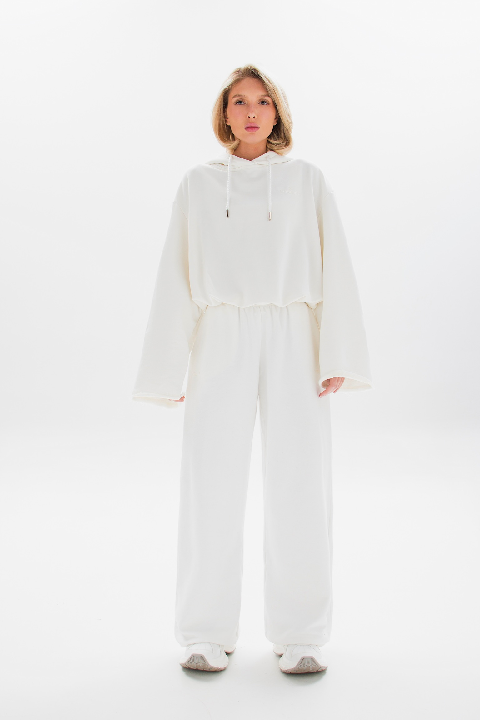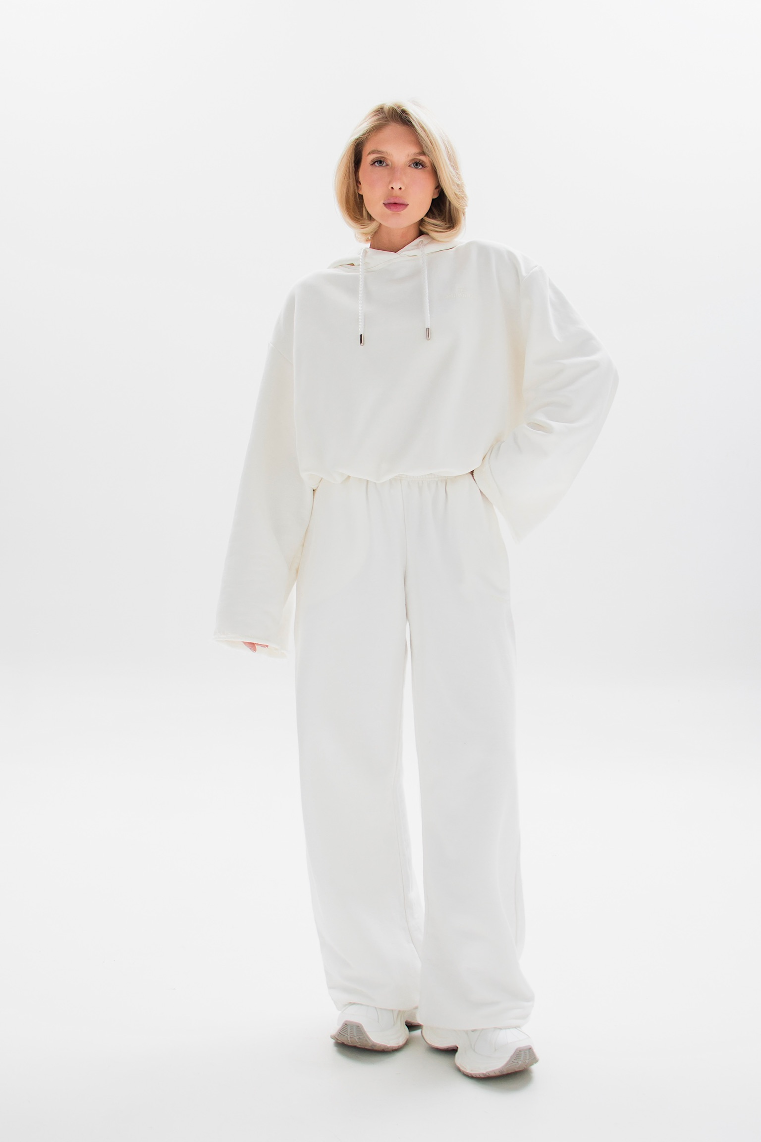 Объёмное худи из мягкого хлопкового футера, в котором сочетаются комфорт, женственность и характер. Вшитые подплечники формируют современный силуэт и придают модели выразительность, сохраняя при этом ту самую расслабленную посадку худи.