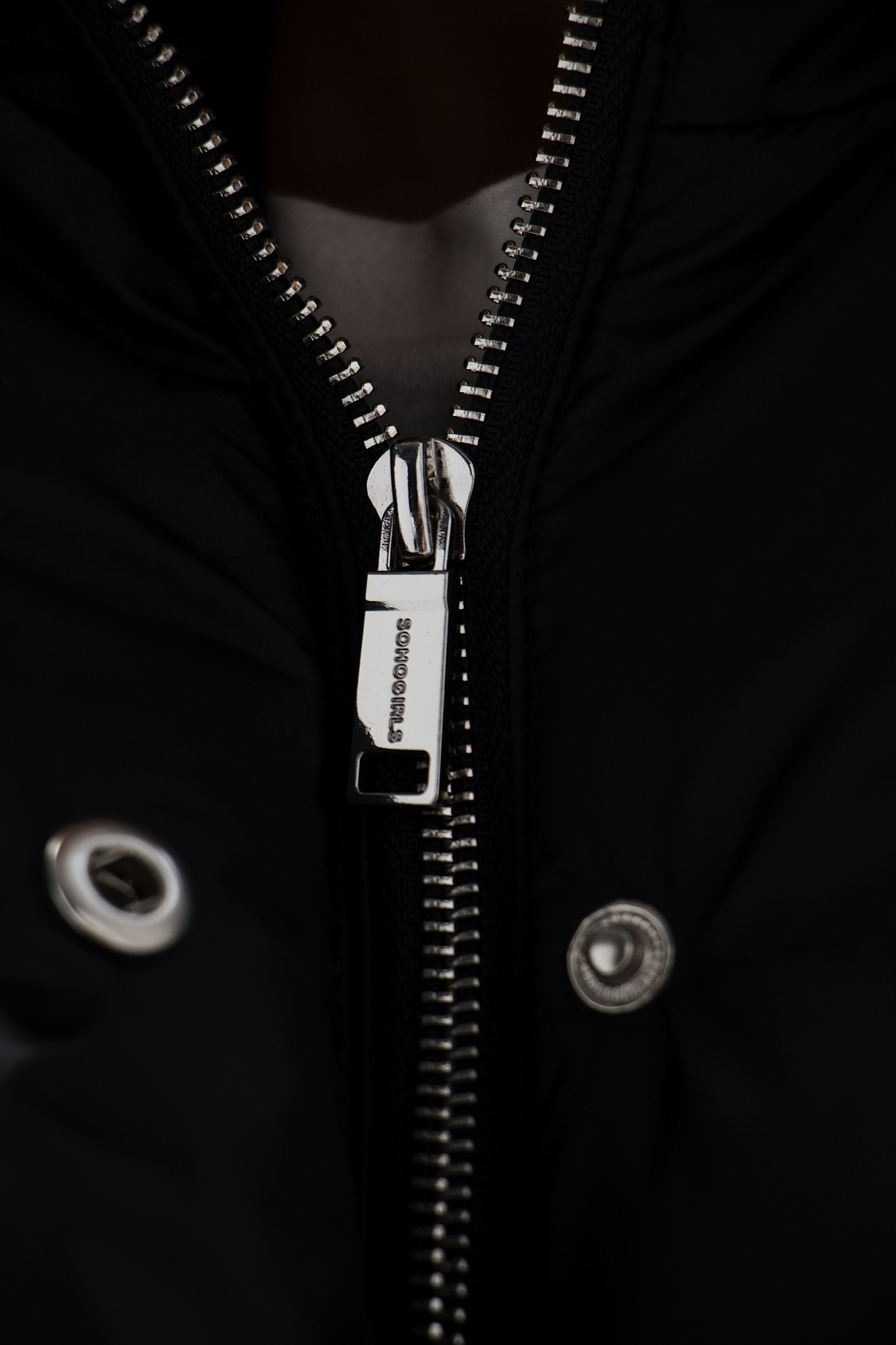 Модель имеет съемный капюшон и скрытые фиксаторы снизу, которые помогают регулировать посадку, предотвращая продувание.