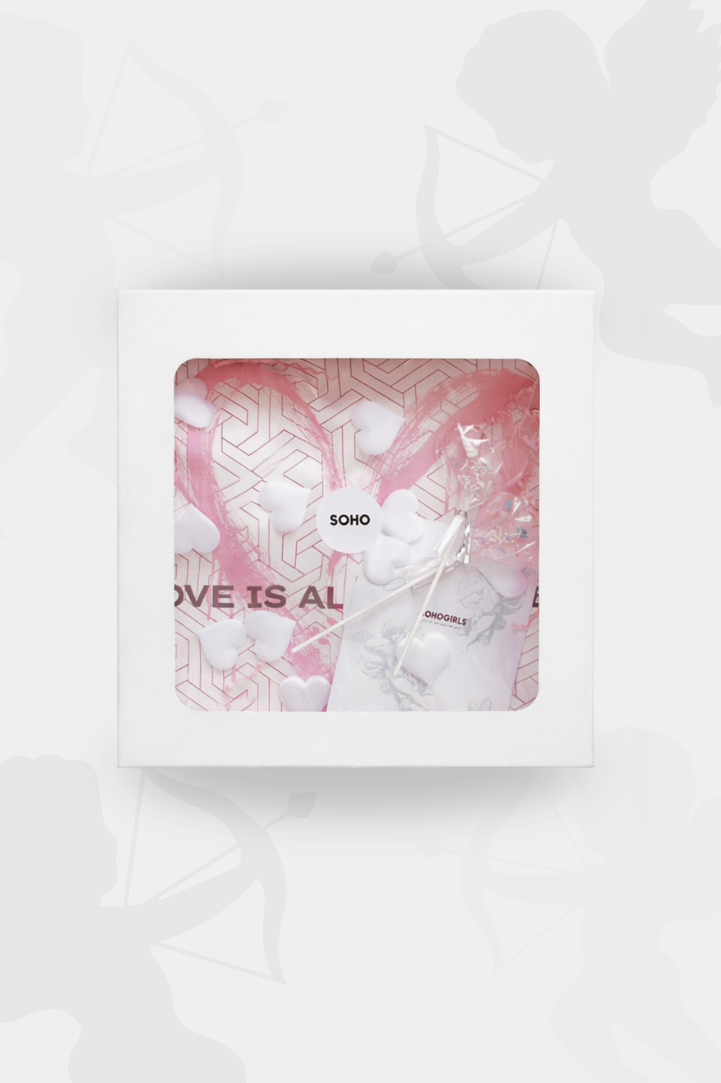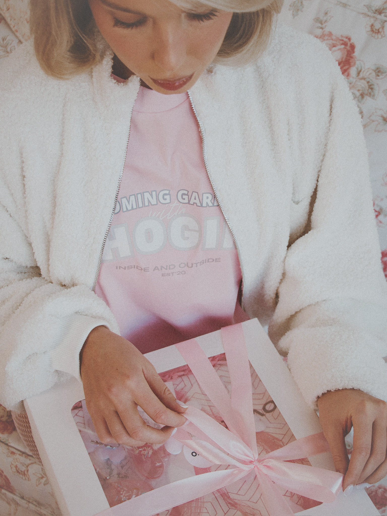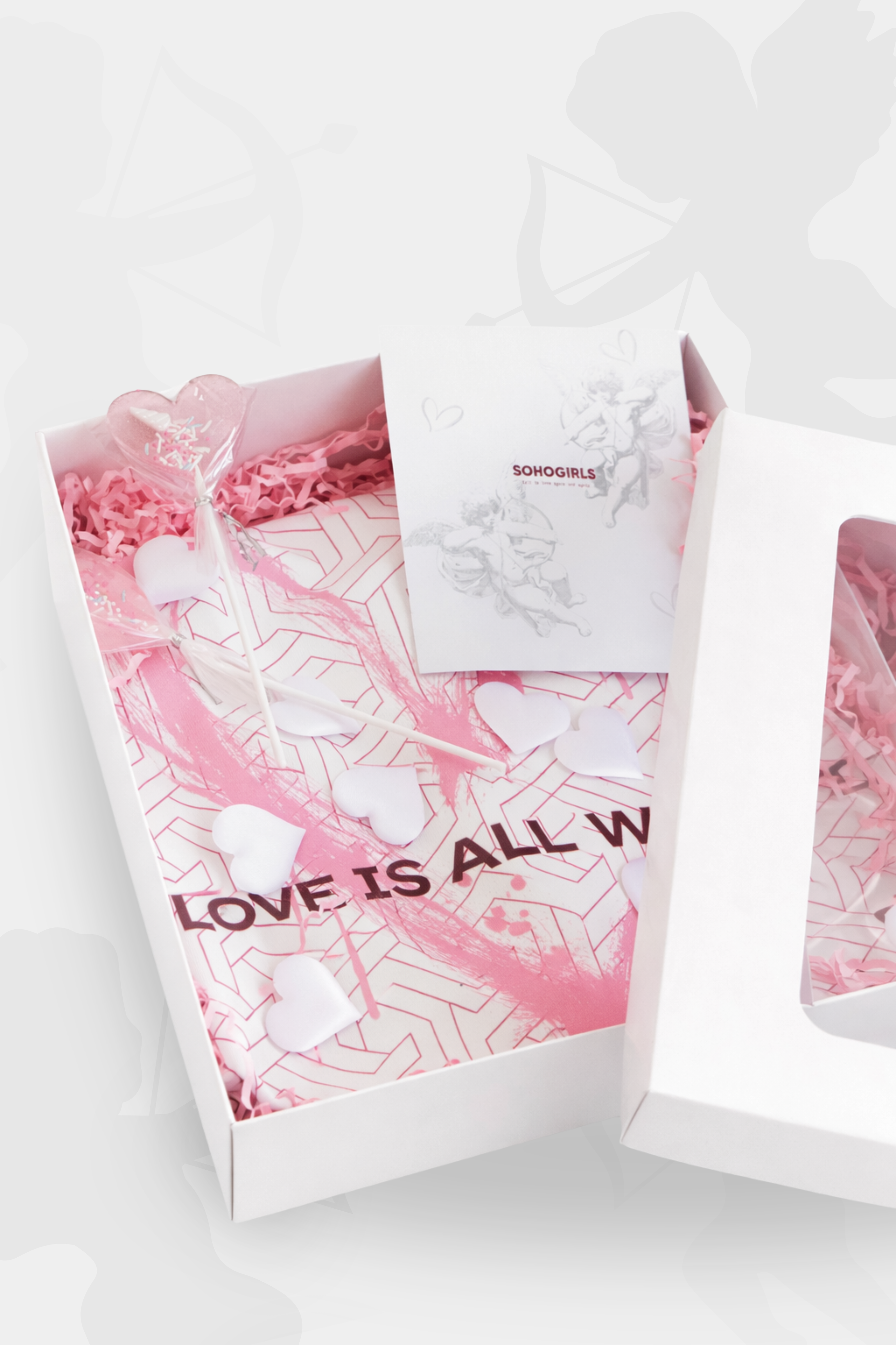 Подарочный бокс оформлен в нежной розовой гамме с наполнением, чтобы момент распаковки стал частью подарка.
