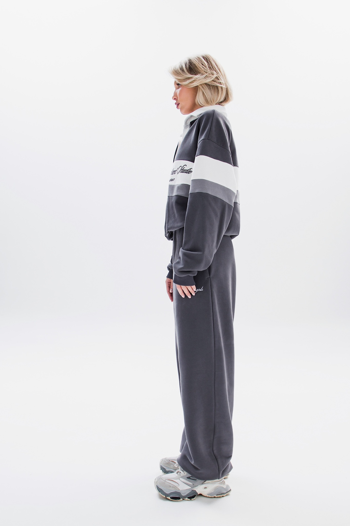 В паре с брюками костюм выглядит стильно и универсально - подойдёт и для повседневных образов, и для спортивного настроения.