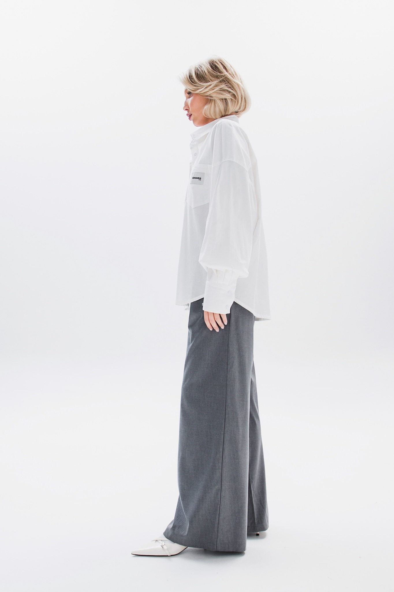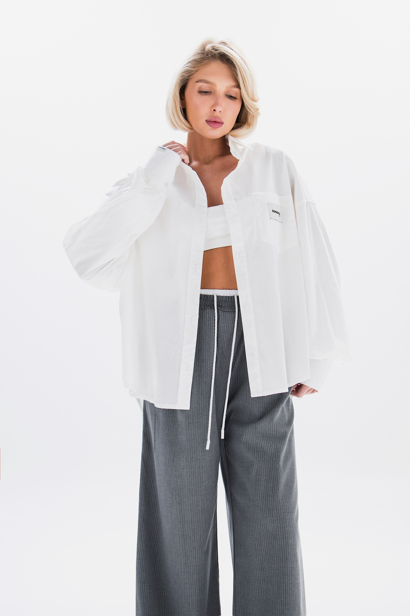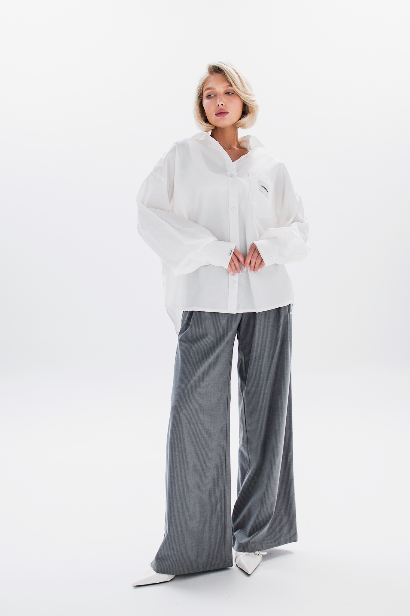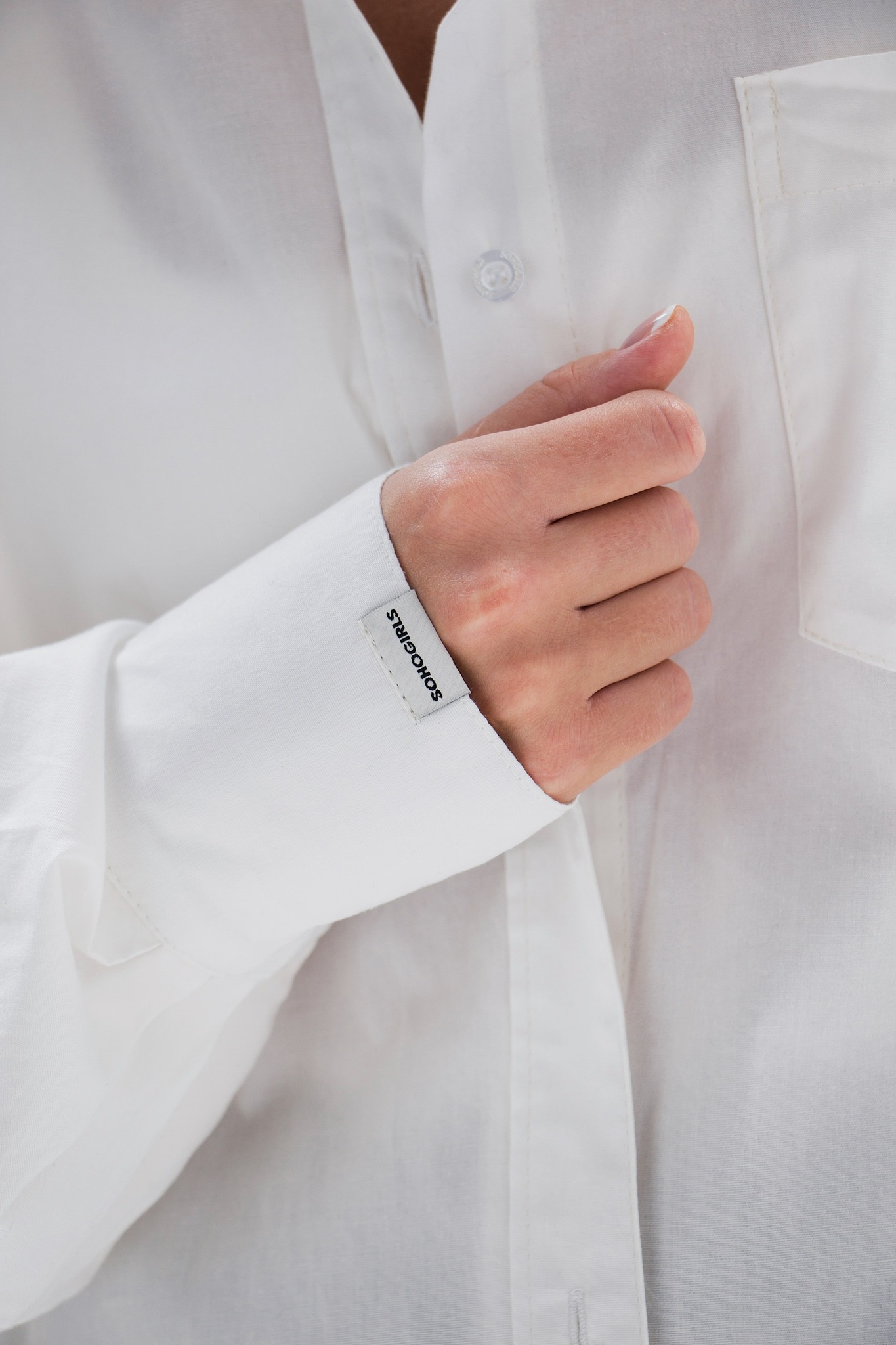 Свободная рубашка в идеальном кремовом оттенке с минималистичными акцентными бирками.