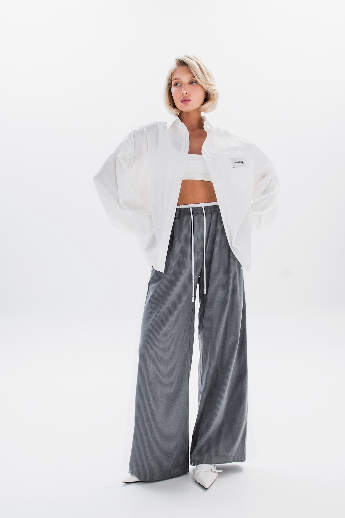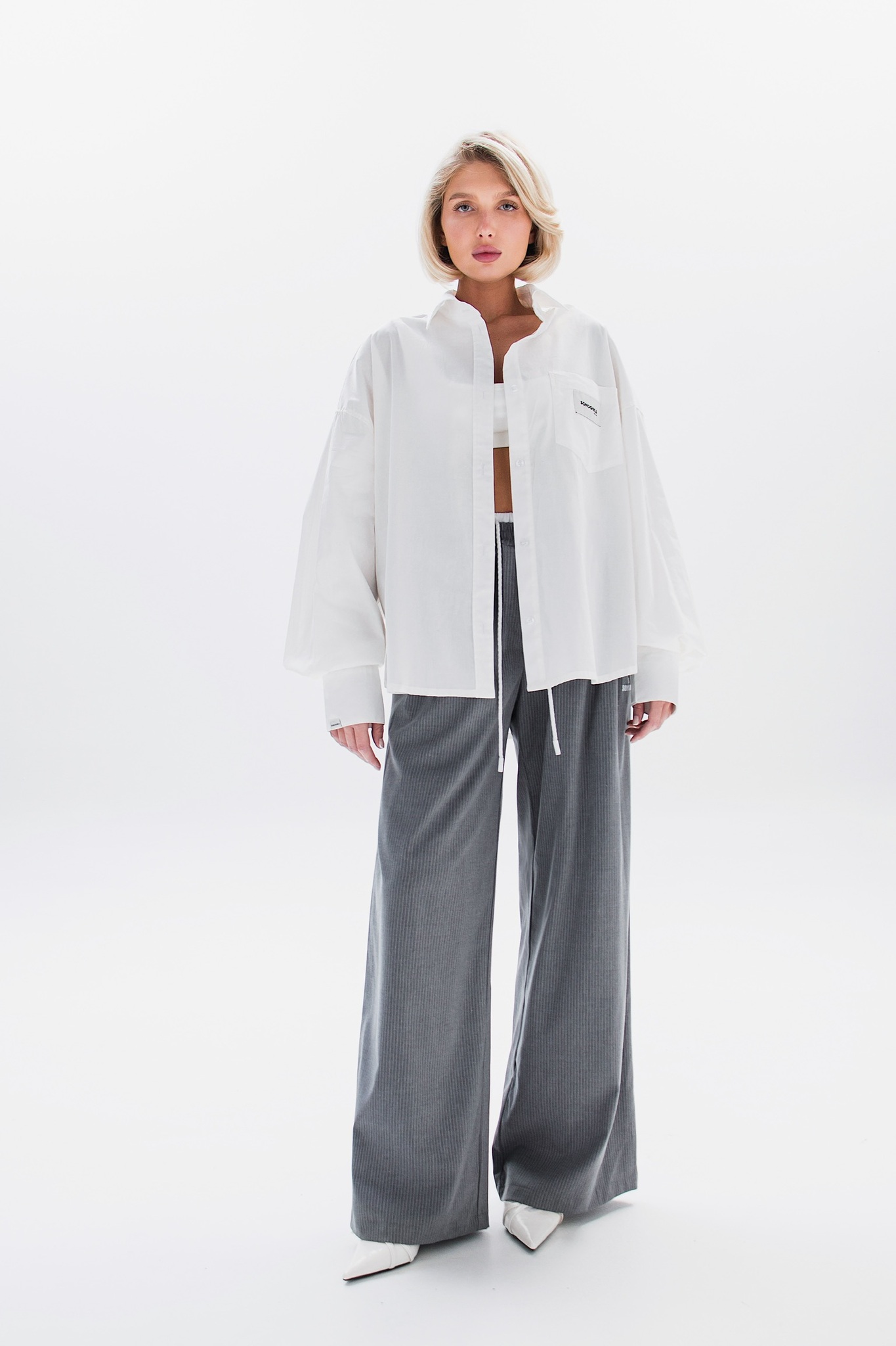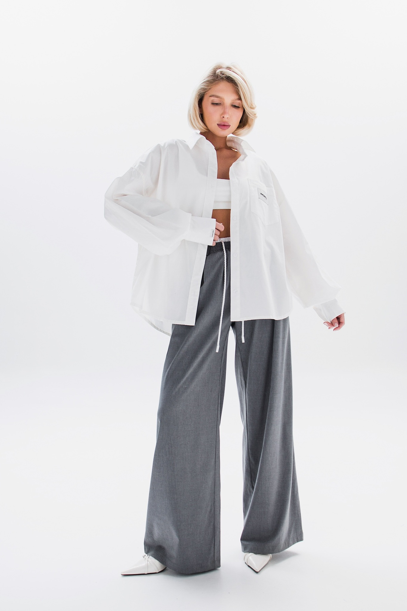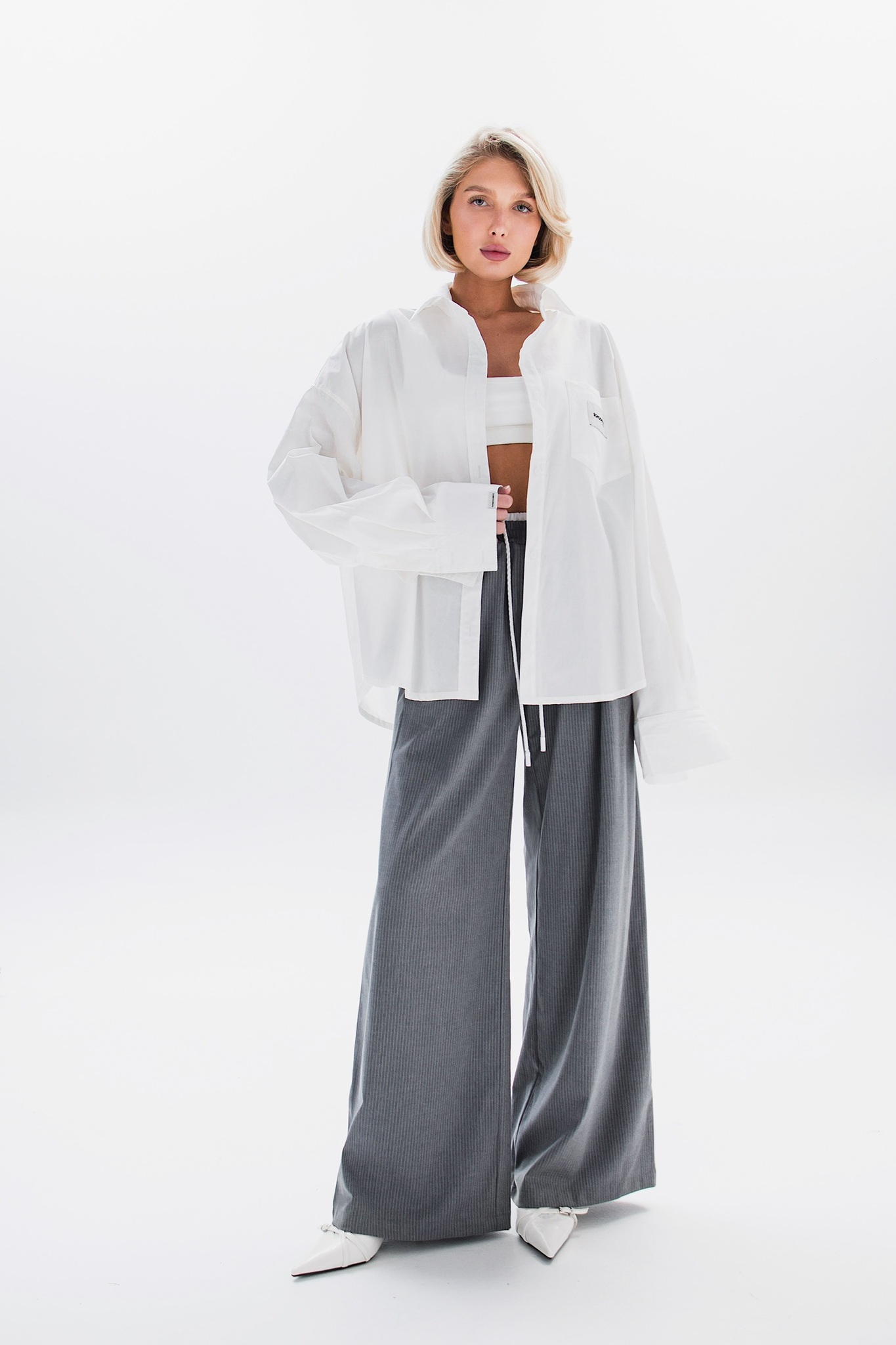Свободная рубашка в идеальном кремовом оттенке с минималистичными акцентными бирками.