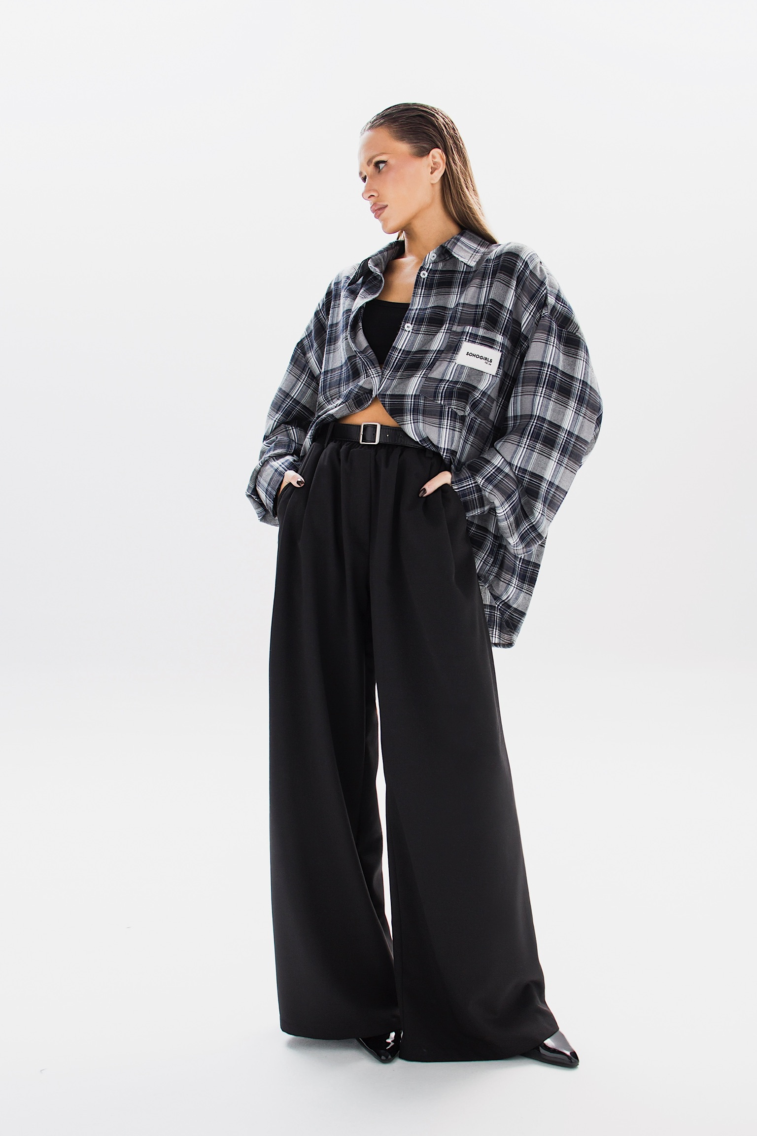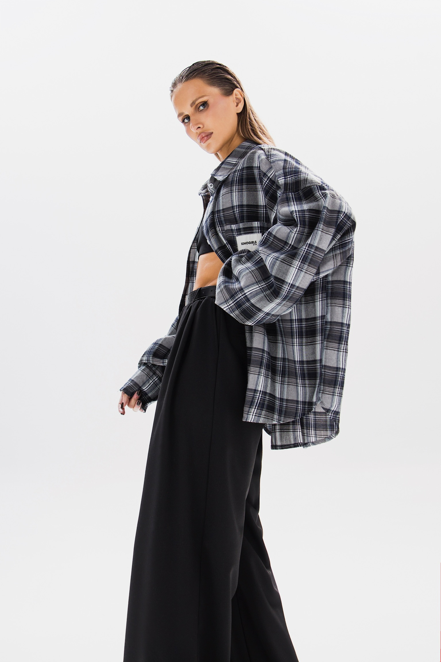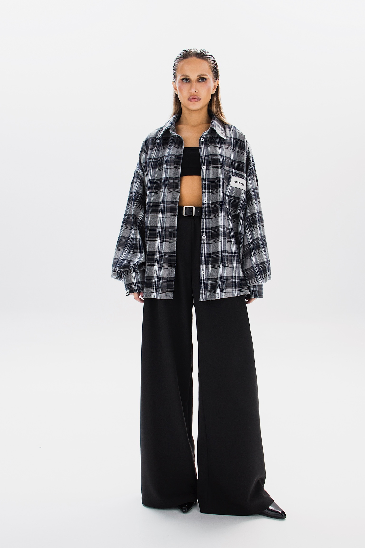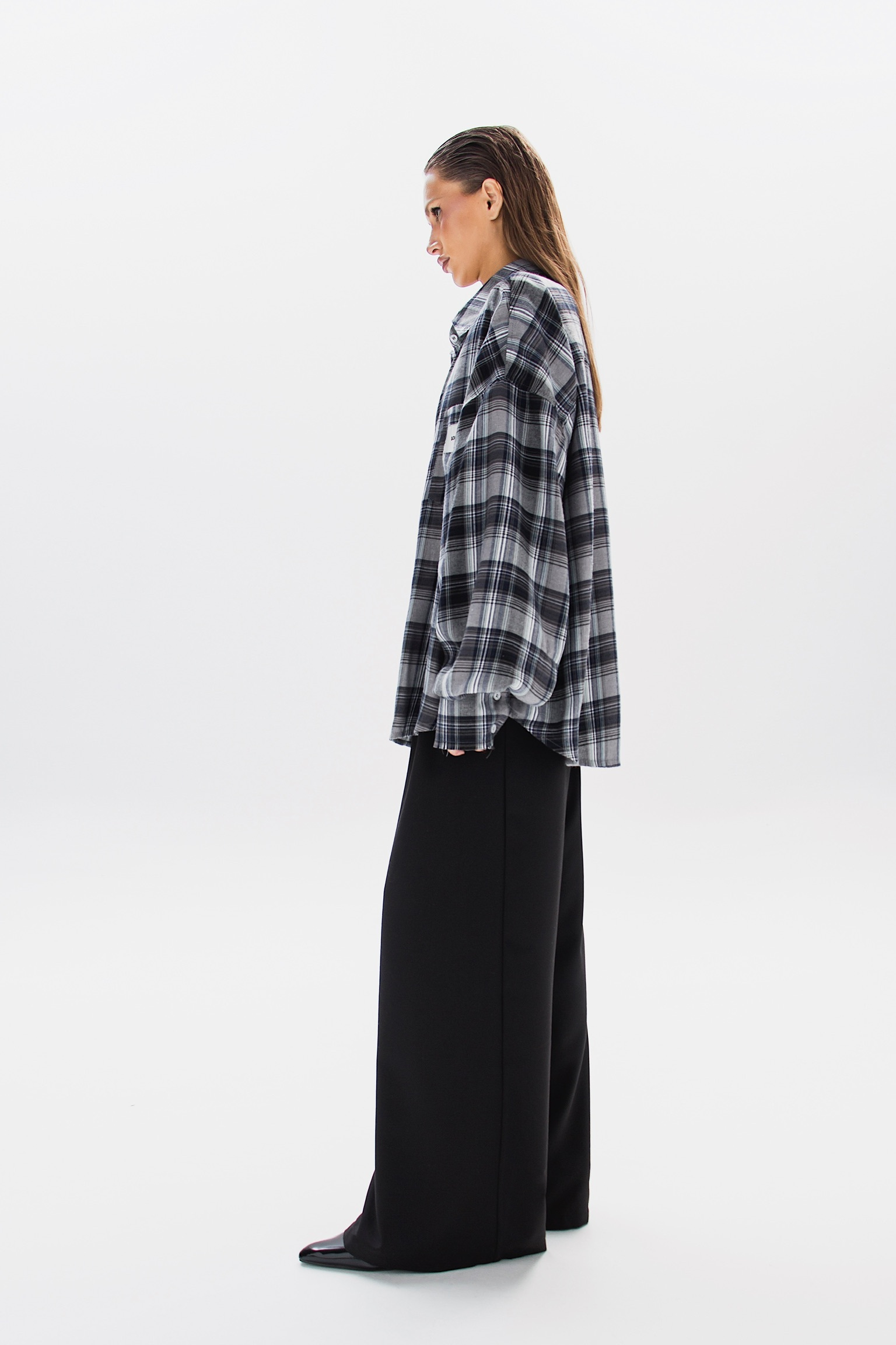 Рубашка в клетку в свободном крое и со спущенной линией плеч.
