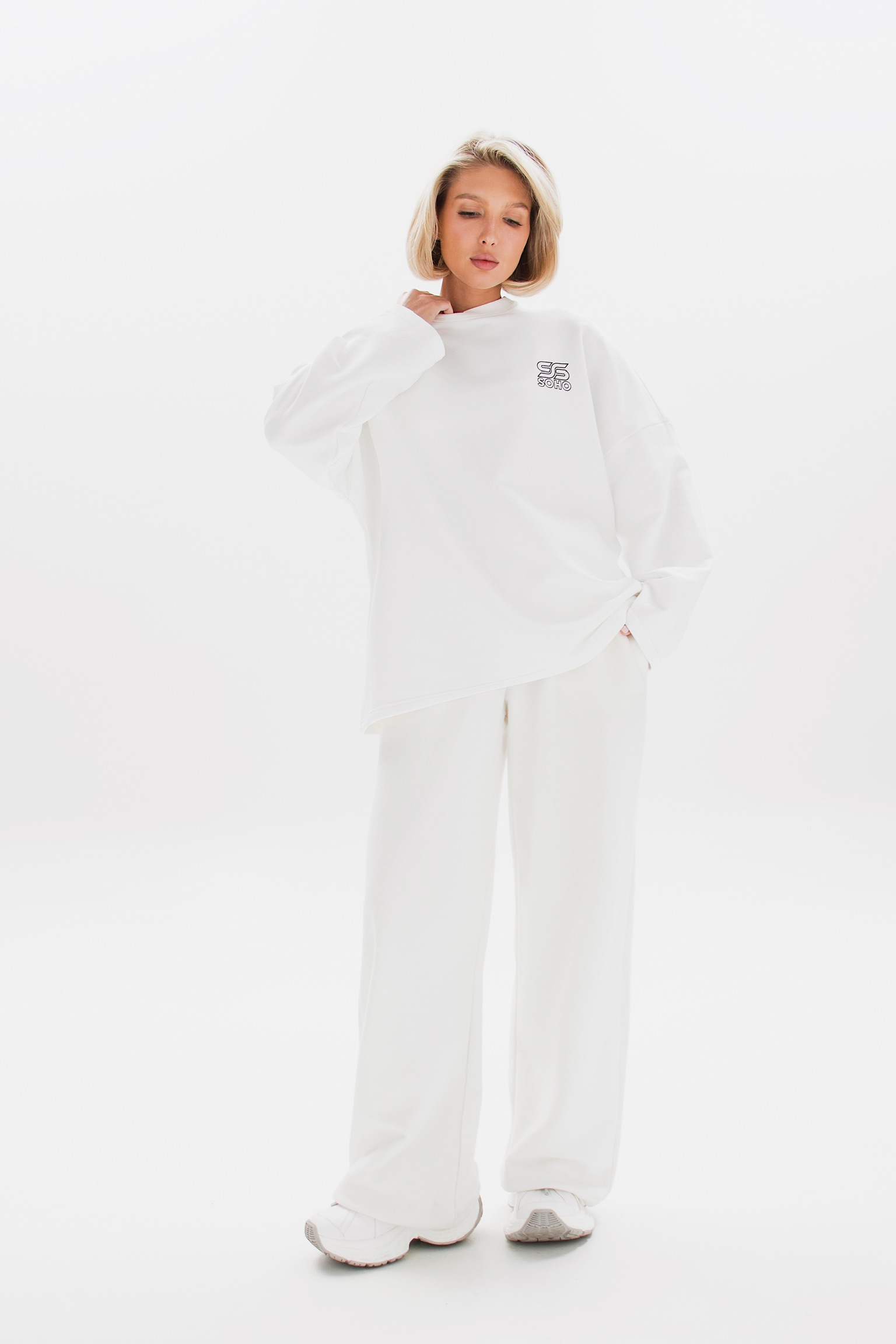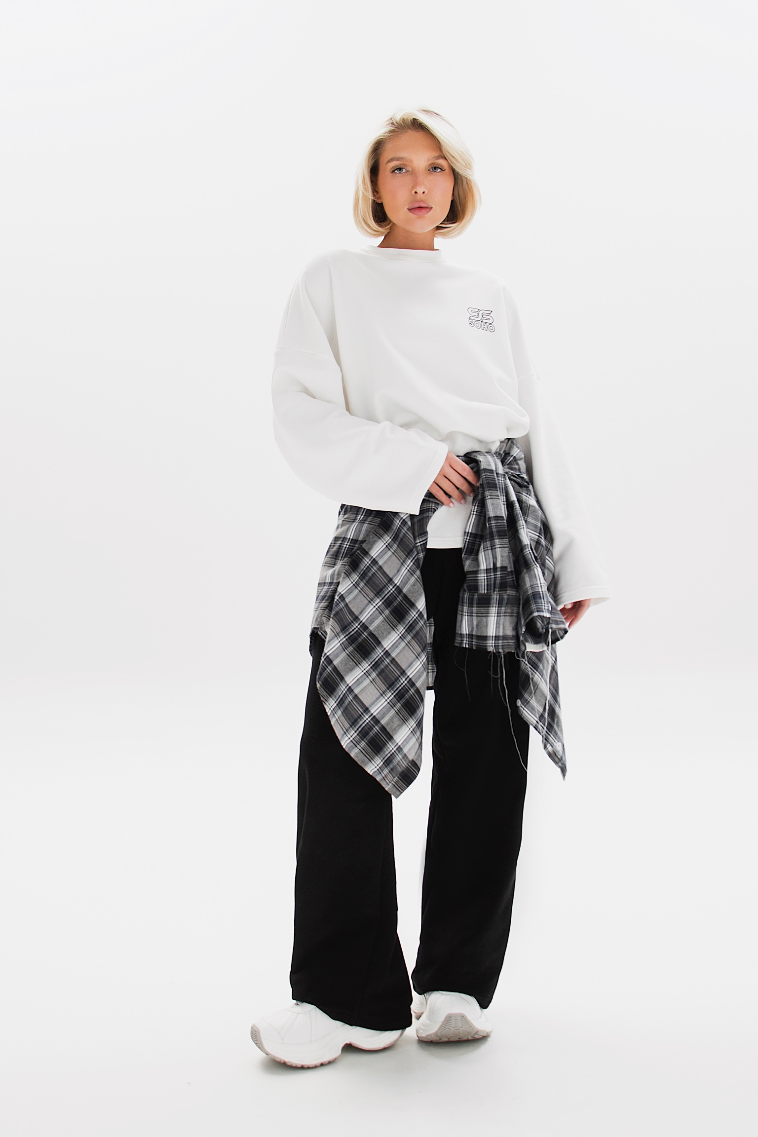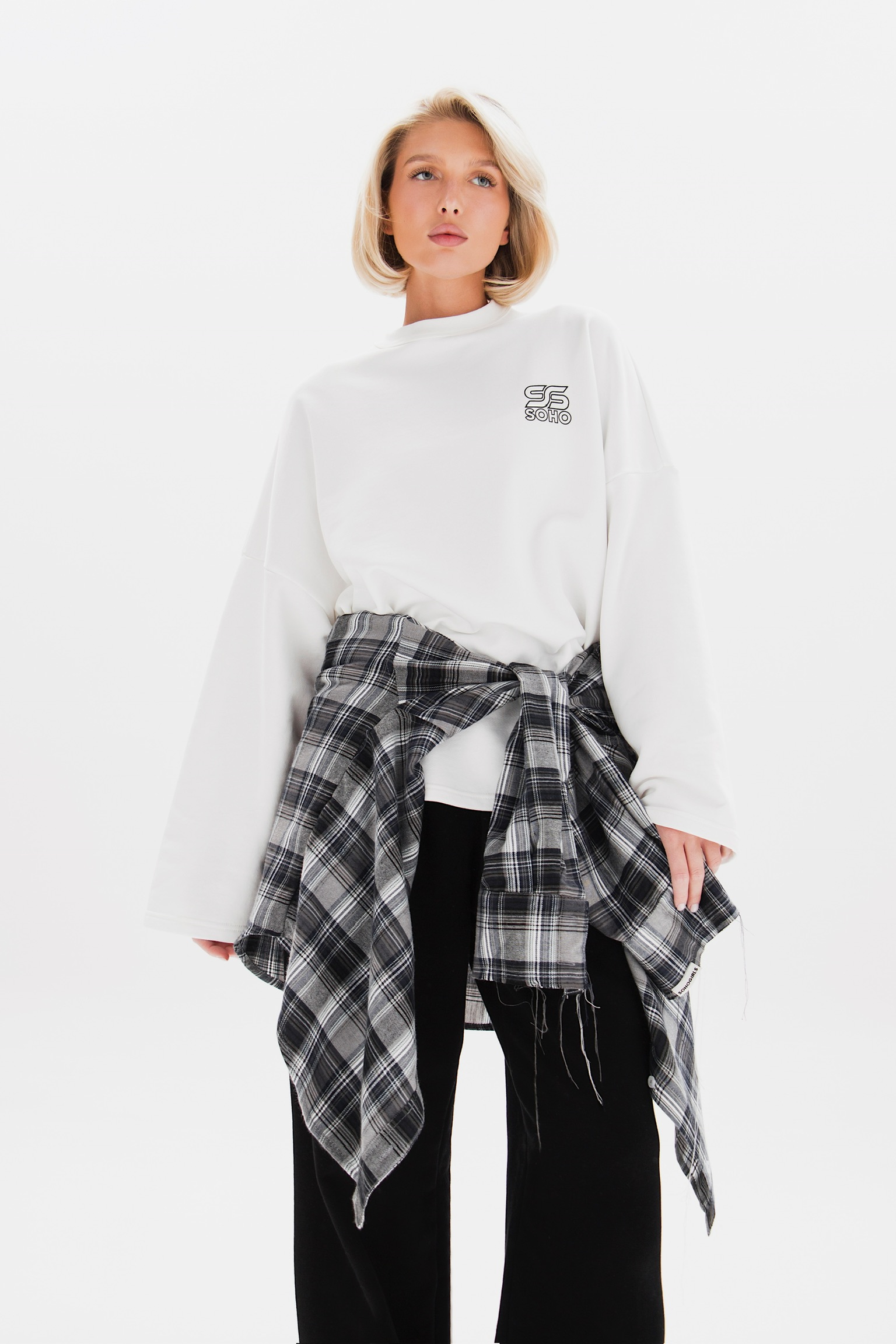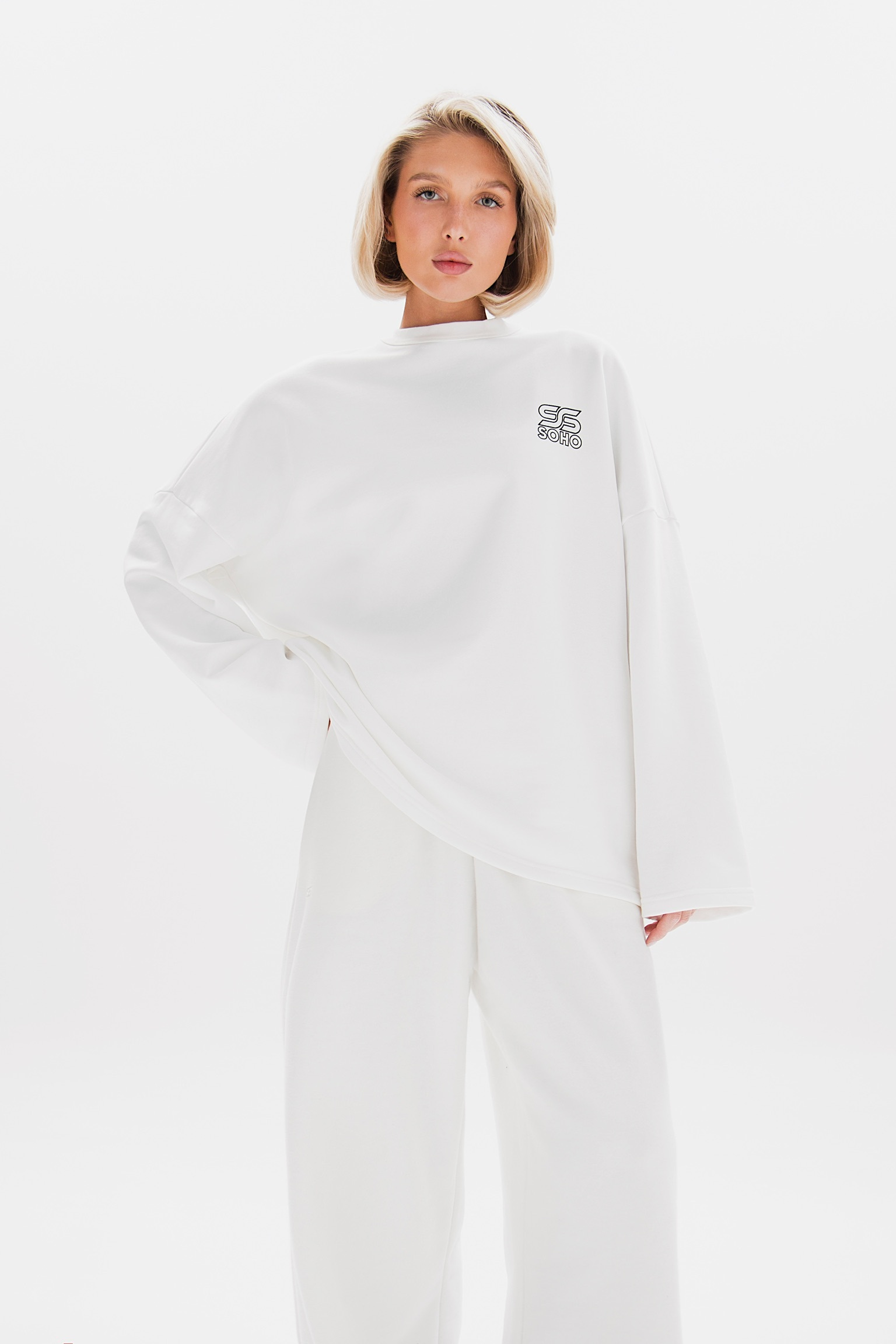 Свитшот свободного кроя с принтами на груди и спине - базовый элемент гардероба с акцентом на стиль и индивидуальность