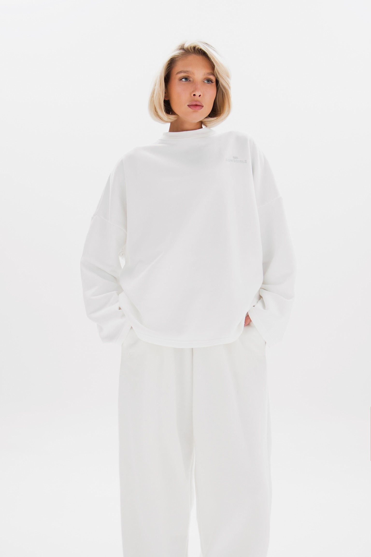 Свитшот свободного кроя с вышивками на груди и спине - базовый элемент гардероба с акцентом на стиль и индивидуальность