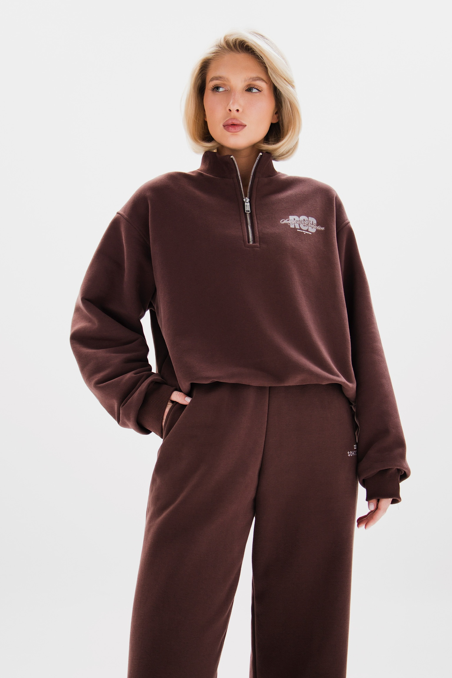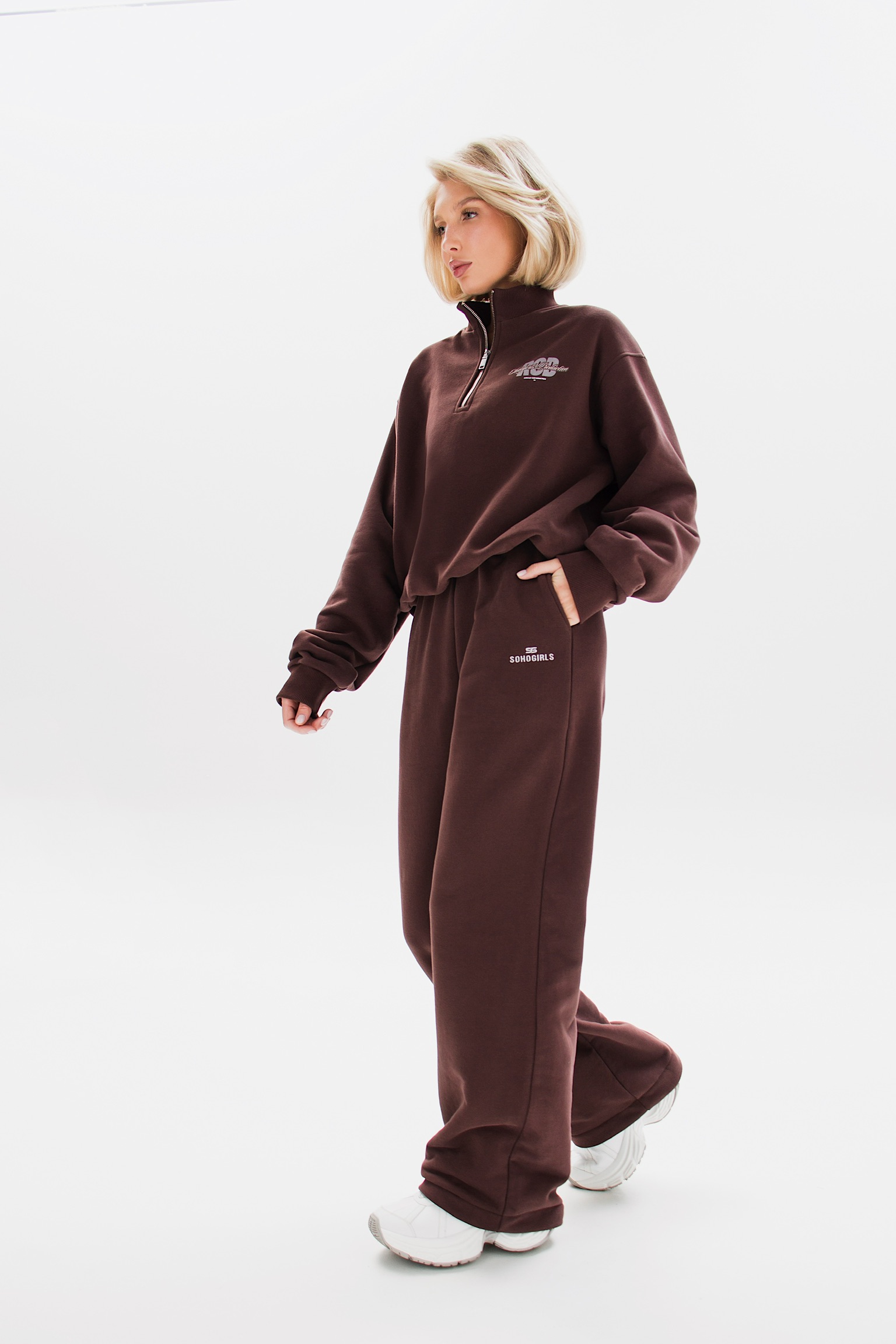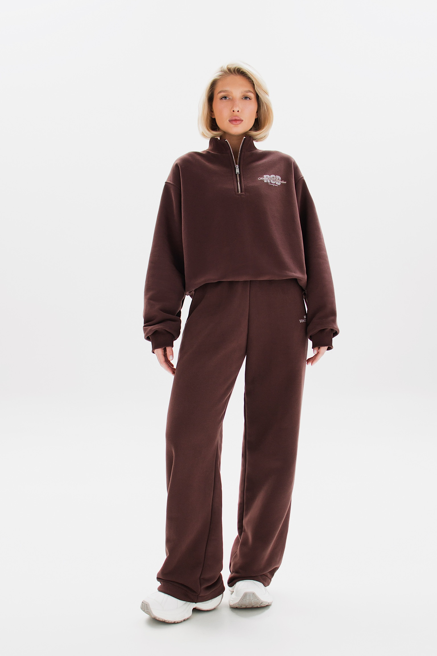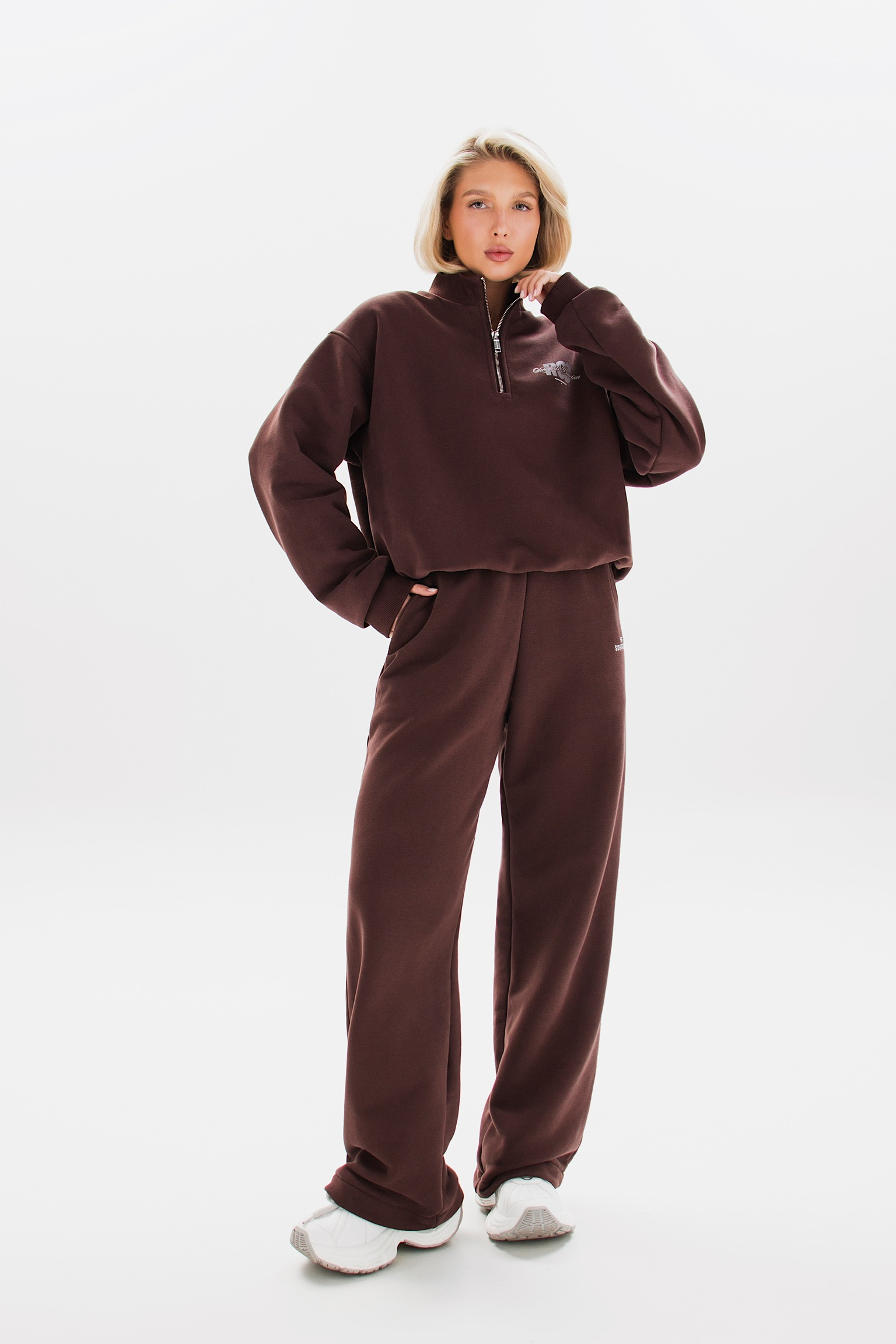 Свитшот свободного кроя выполнен из мягкой приятной ткани с принтом на груди и молнией
