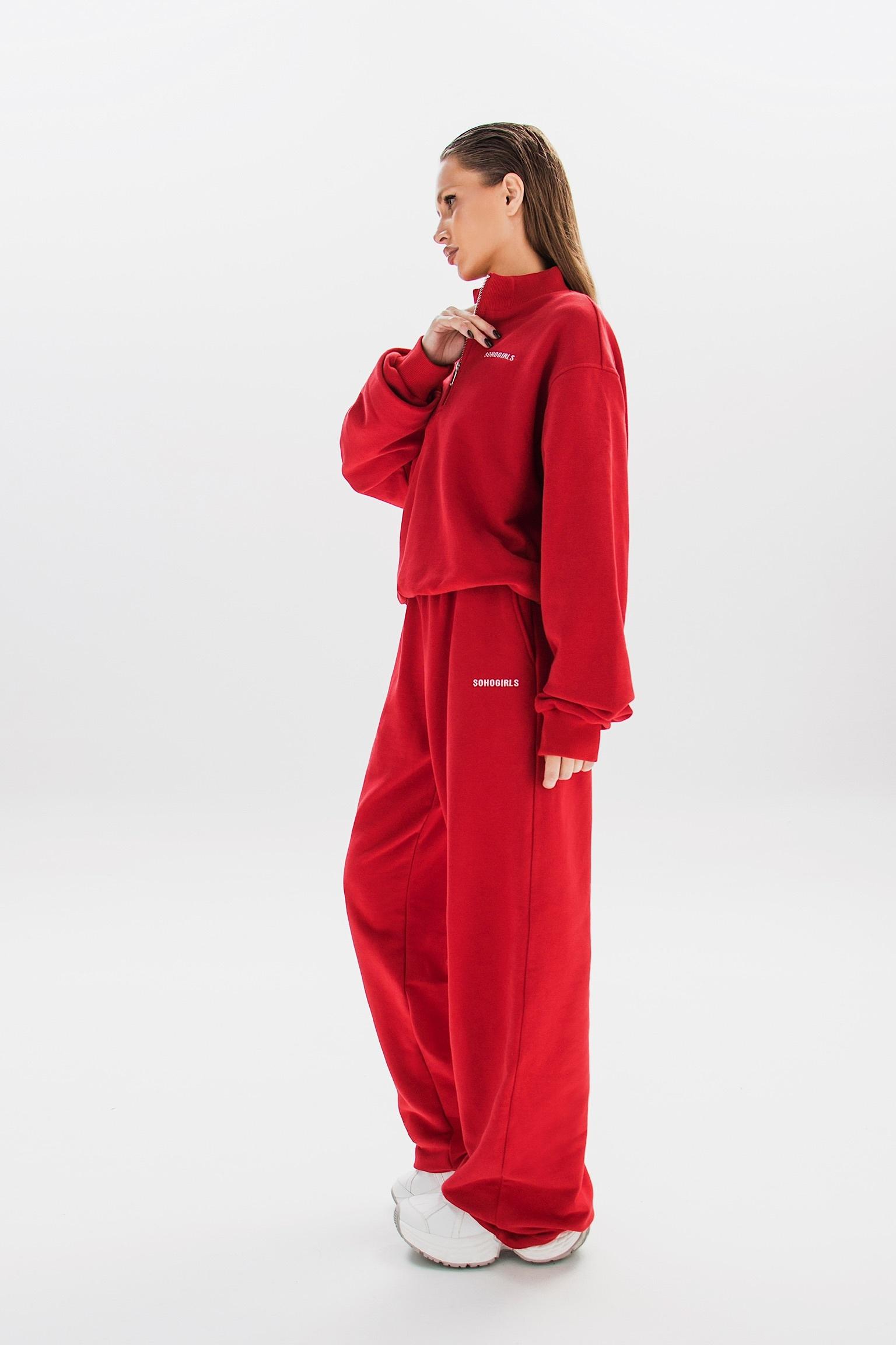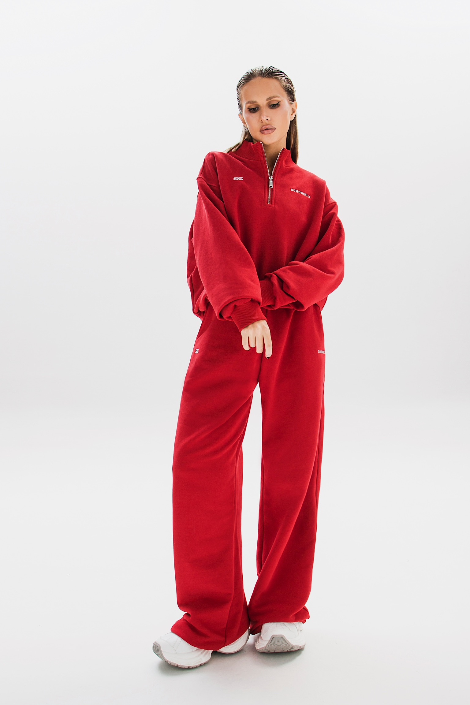 Свитшот свободного кроя выполнен из мягкой приятной ткани с вышивкой на груди и молнией