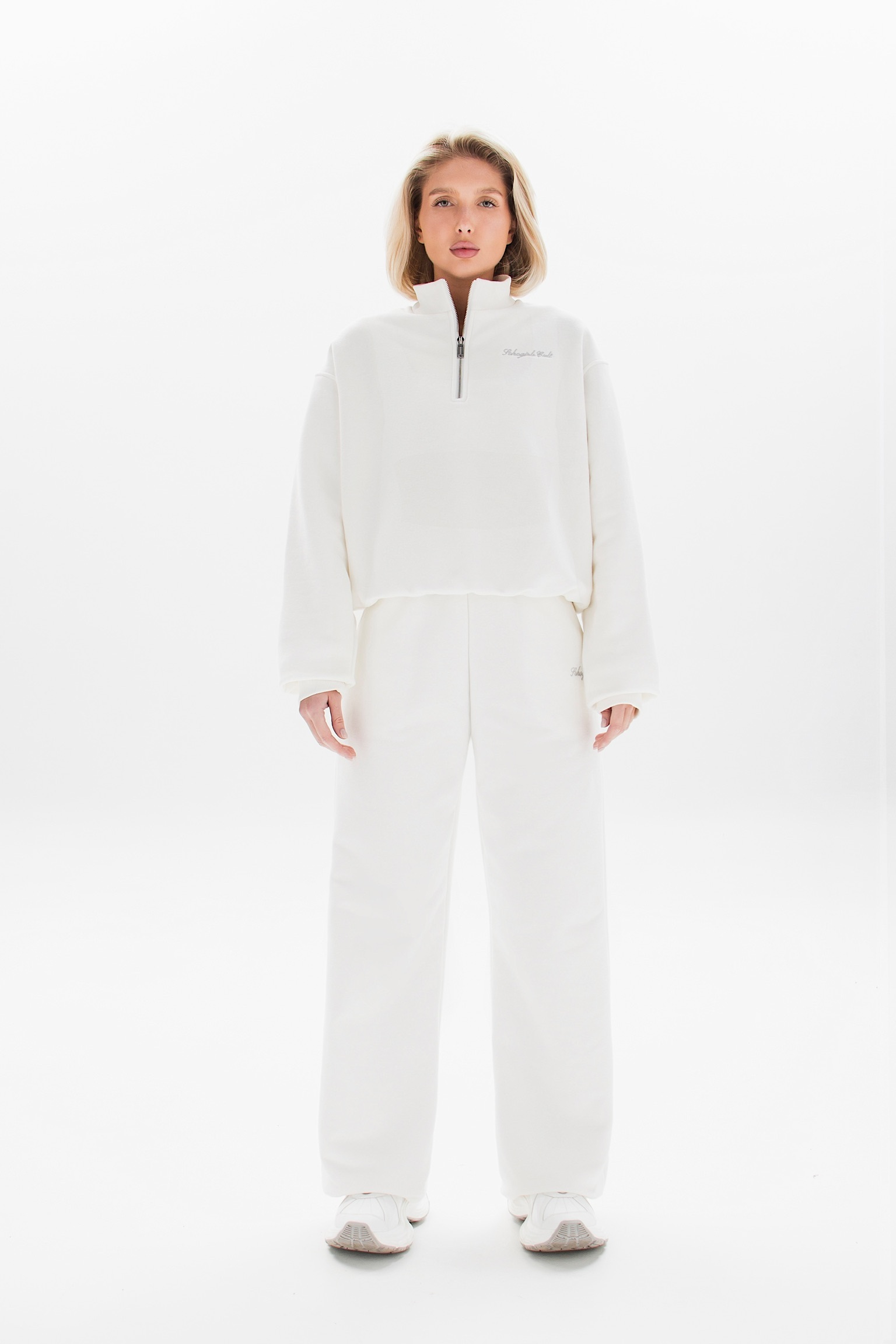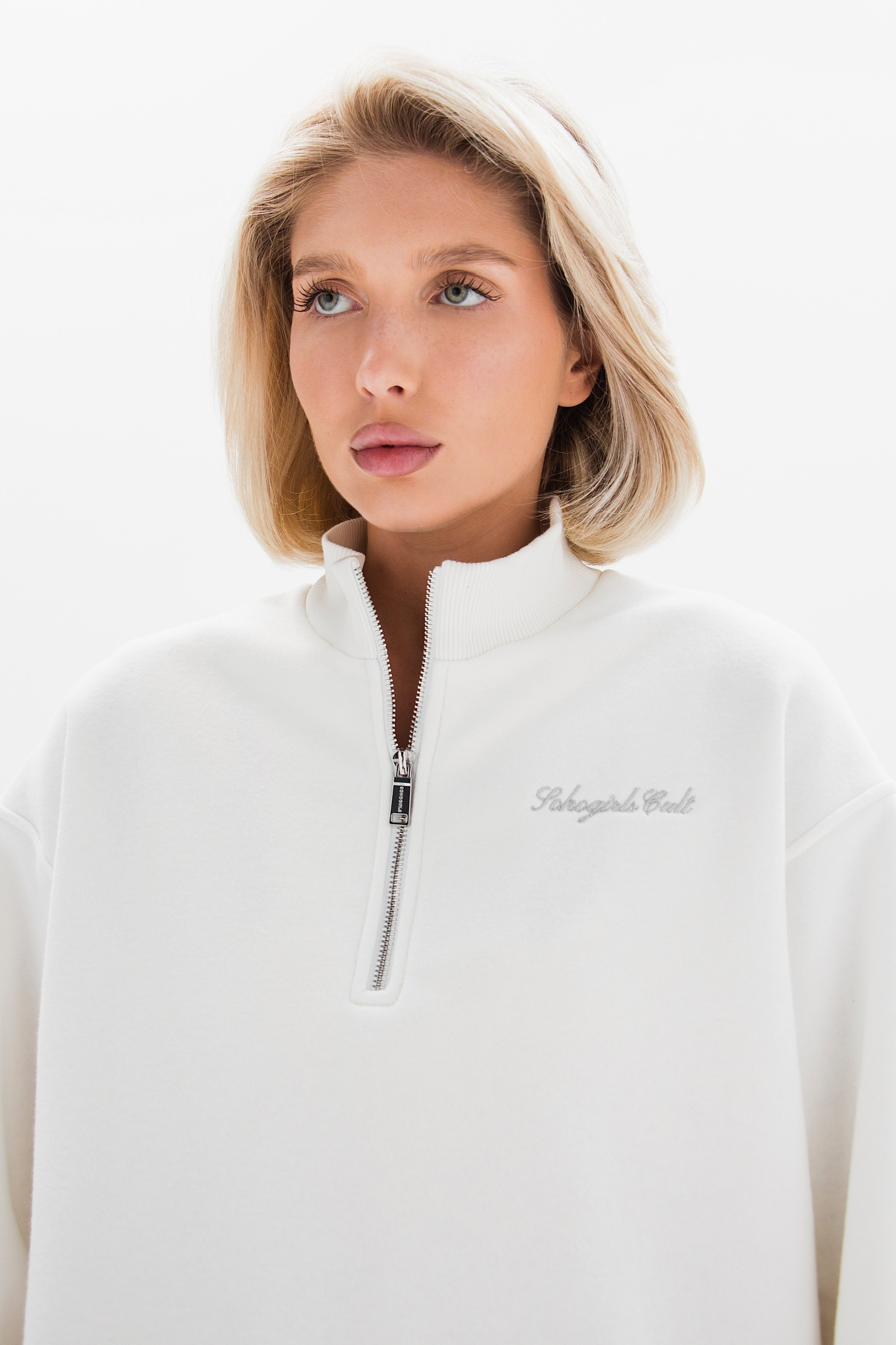 Свитшот свободного кроя выполнен из мягкой приятной ткани с вышивкой на груди и молнией