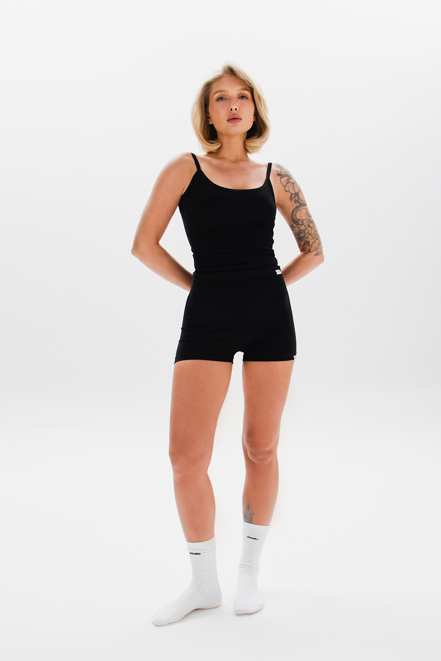 Чистая линия, комфортная посадка и эластичный материал делают этот топ идеальной базой для любого образа — от домашнего до городского.