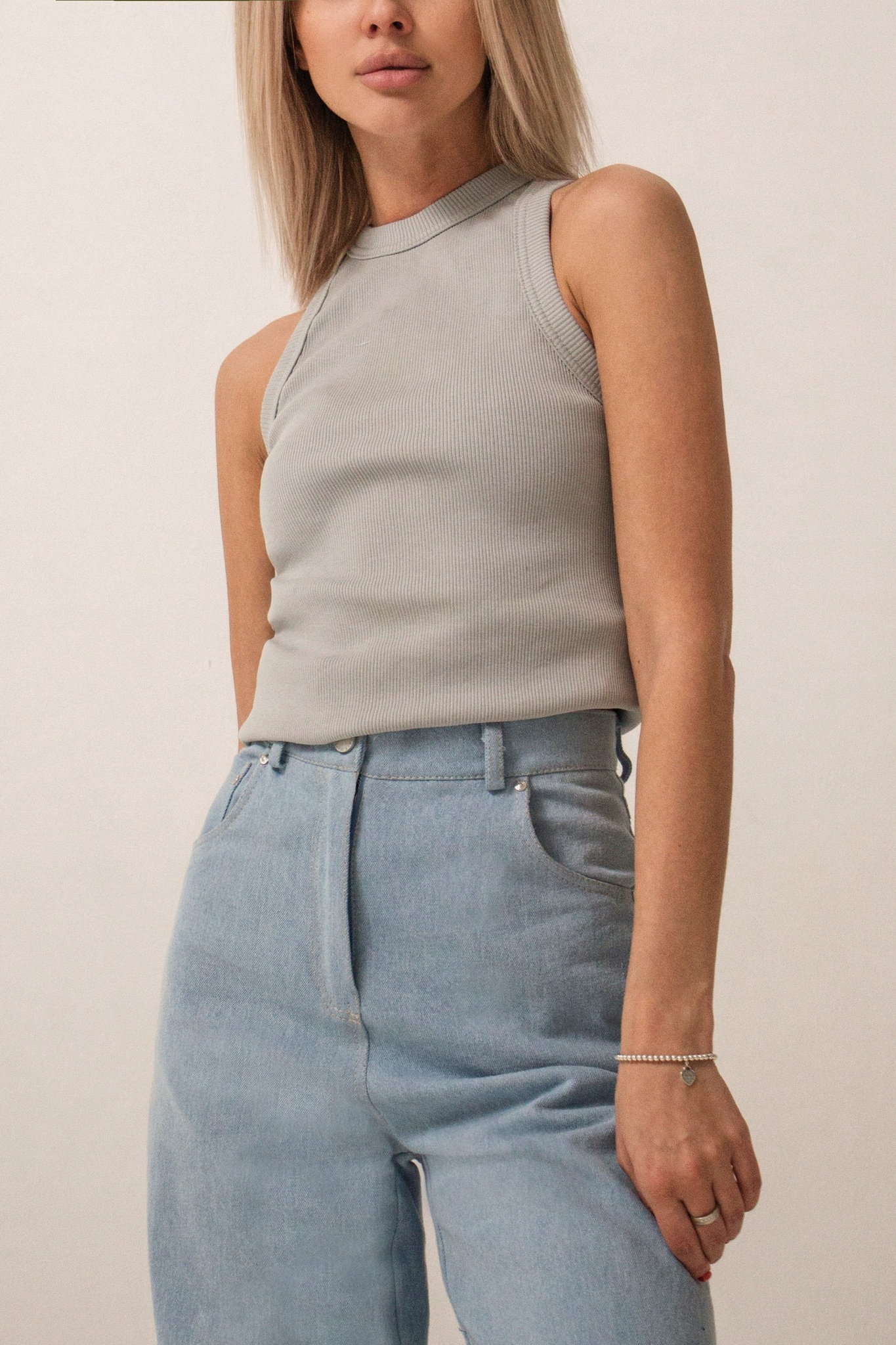 Топ в рубчик с вышивкой на спине
